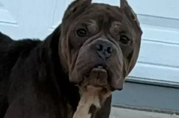 He’s a black pit bull with a benign fatty tumor on his side, his chest has a weirdly shaped white star on it in fur, he is unaltered, and he has brown eyes.
