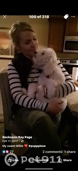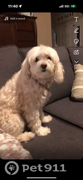 Millie is a white Shih Tzu/Mini poodle mix she went missing on October 4th because the wind blew open our back door early in the morning. She is around 9 years old and 12 pounds. She has a brown nose and her fur is alittle bit tan colored because of old age