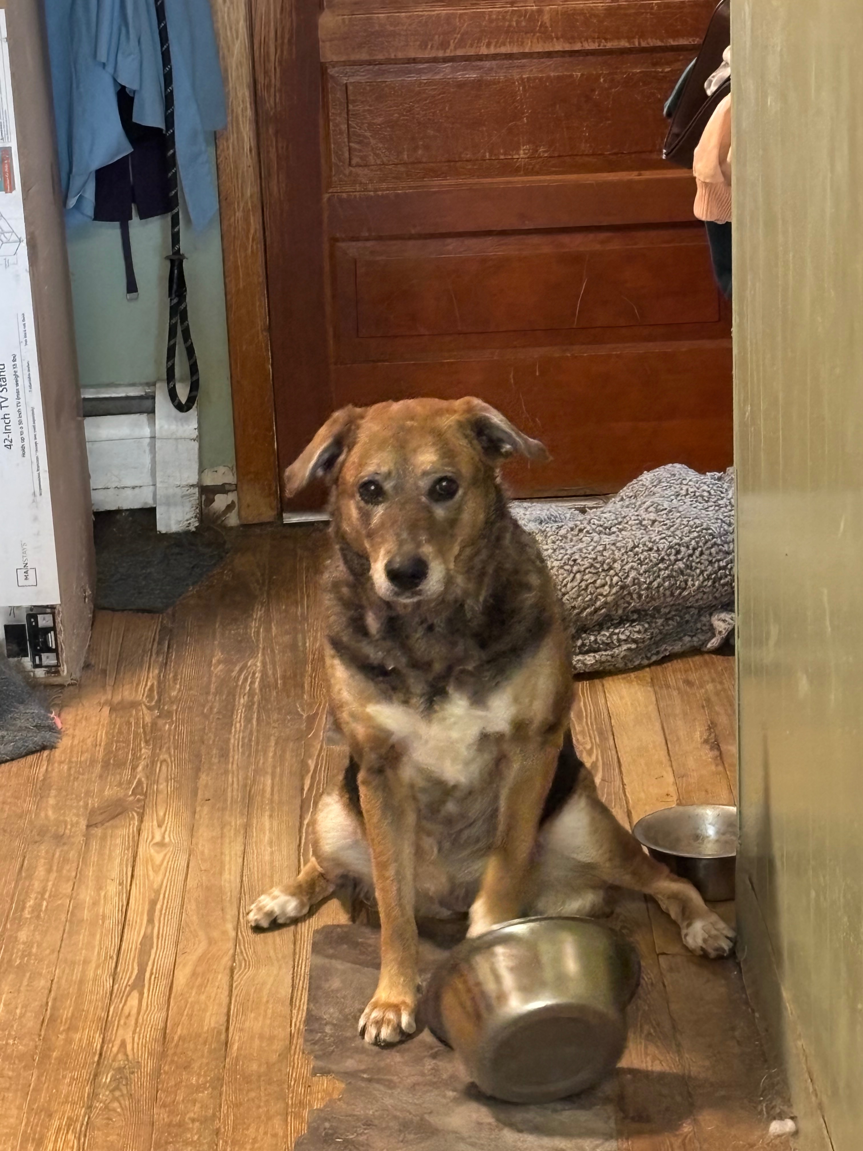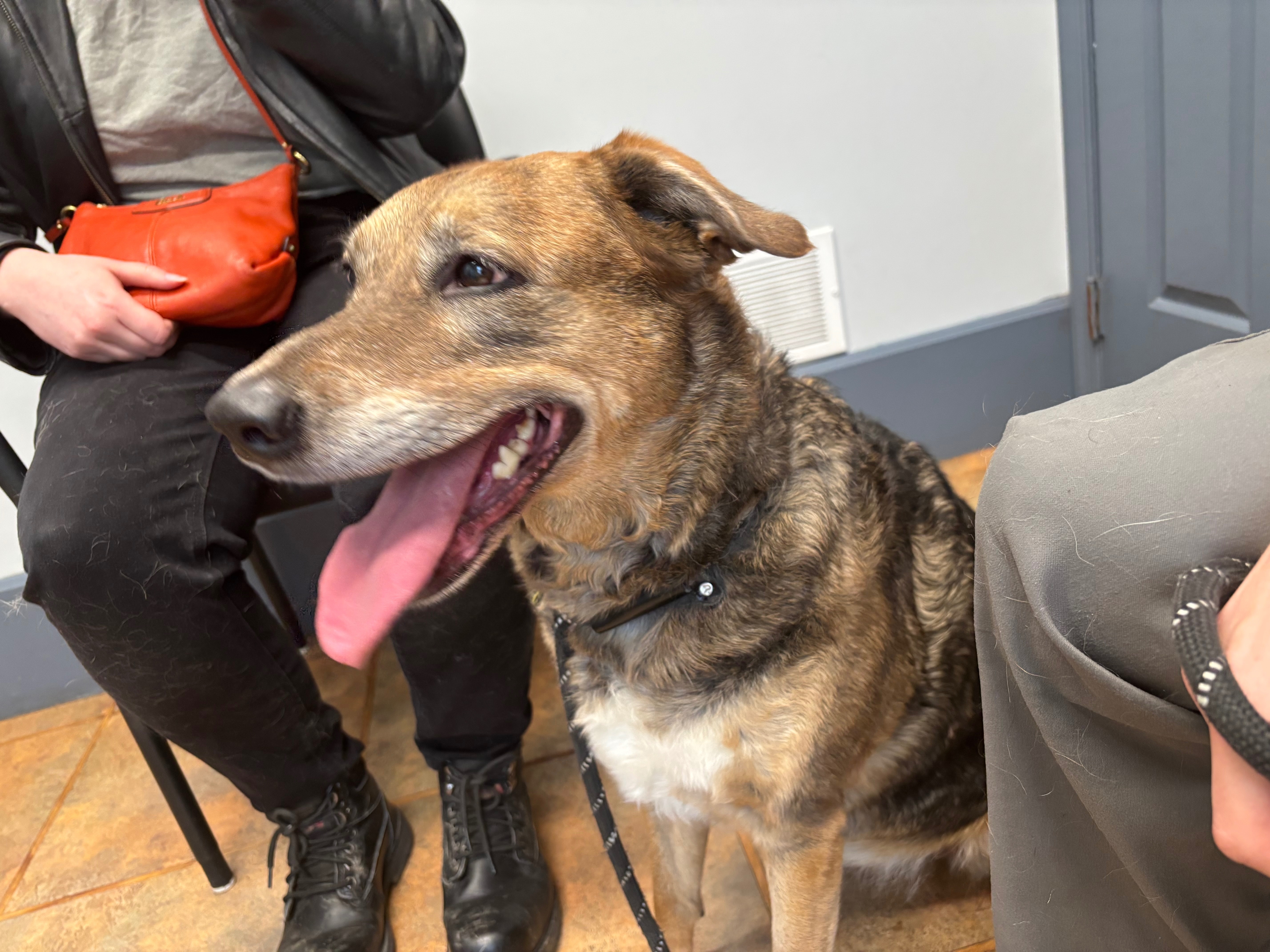 Has a brown and black coat black on the back and brown and white underbelly. She got off her lead while trying to take her and her sister to the bathroom we have been searching non stop to find her she is skiddish of people