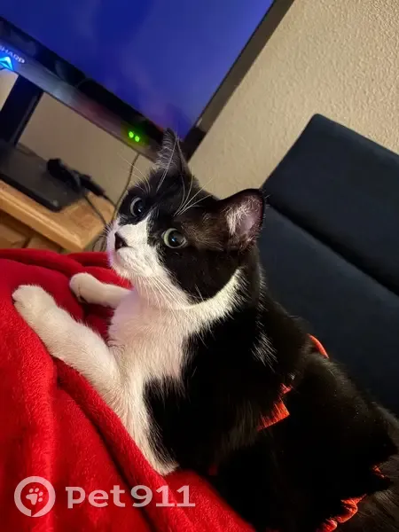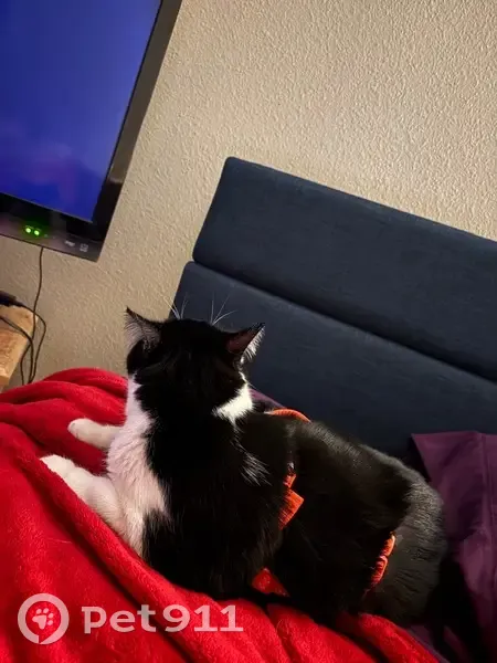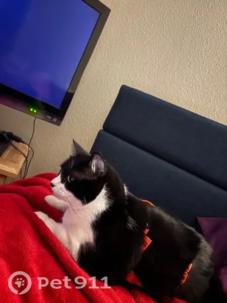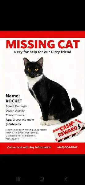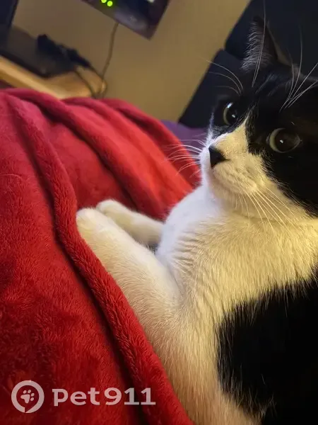 Triangle black nose,white pads with black spots, mostly black on back front white long black tail vocal when hungry. Friend brought my dog in at 4 am she darted I just adopted her didn’t know how she was if I had known I would’ve put her behind a door. I’ve been searching high and low have traps flyers out getting sightings of the wrong cat looks like her but the white blaze on face Sheba has a short one the lookalike has a long one