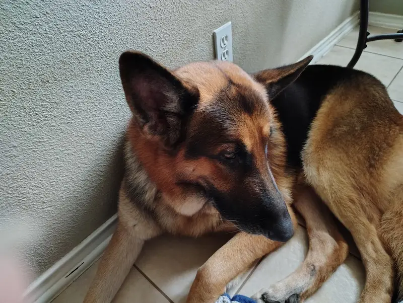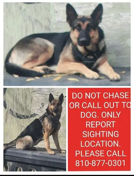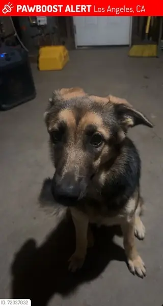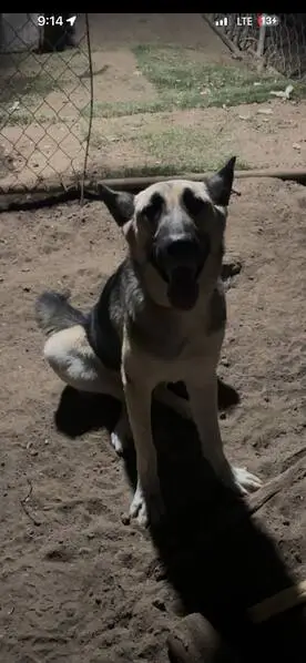 German shepherd male puppy roughly 8 months old. Very sweet and shows submission (not aggressive at all) he gets along with other dogs and cats. Not microchipped but has a black collar with no tags on it