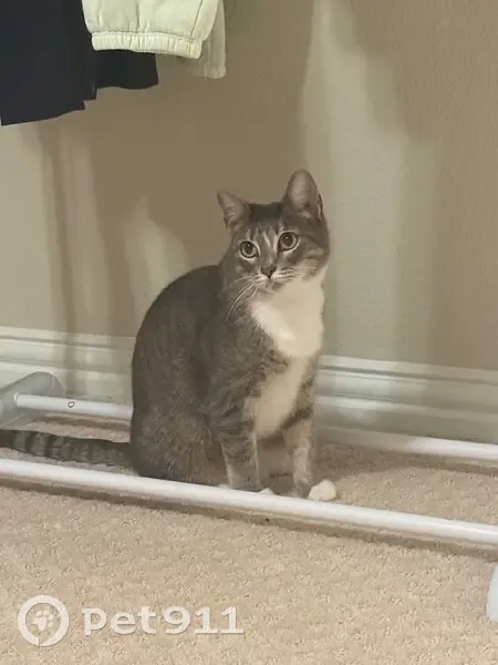 Tabby cat, trimmed whiskers, not declawed, ve...