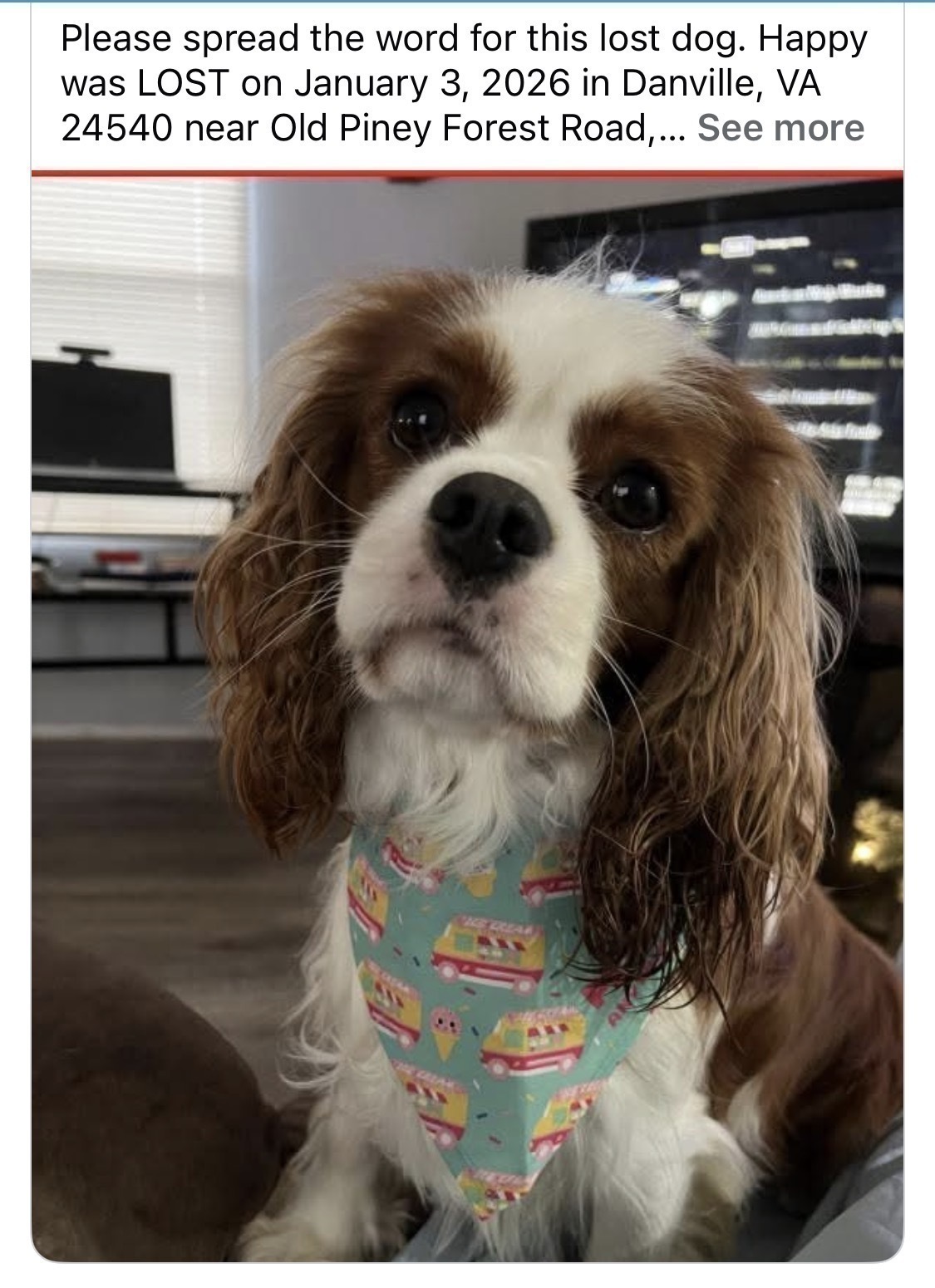 Lost Cavalier Spaniel in Danvi...