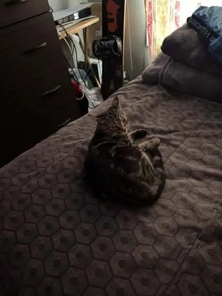 Black white and grey mother cat with its kitten don’t know who they belong to but they are in my patio right now and anyone can come and grab them