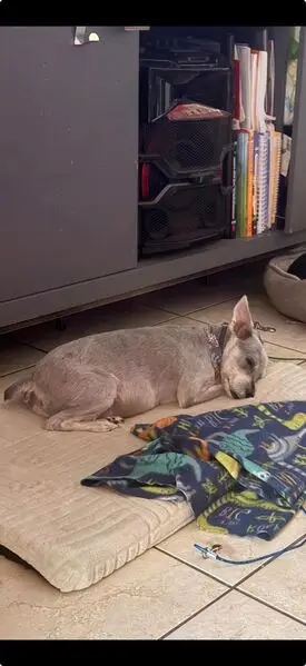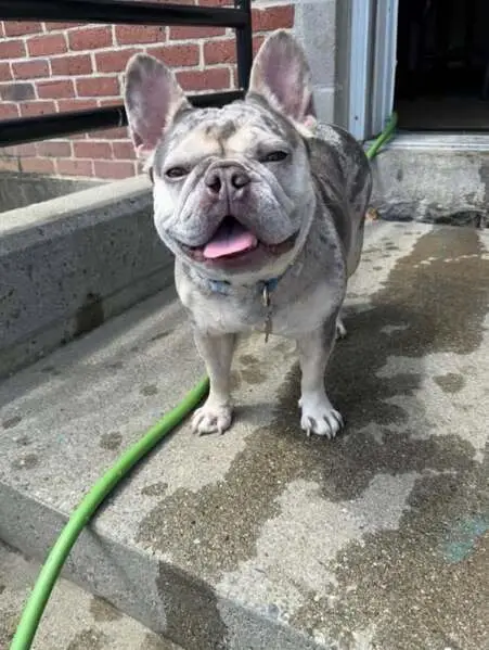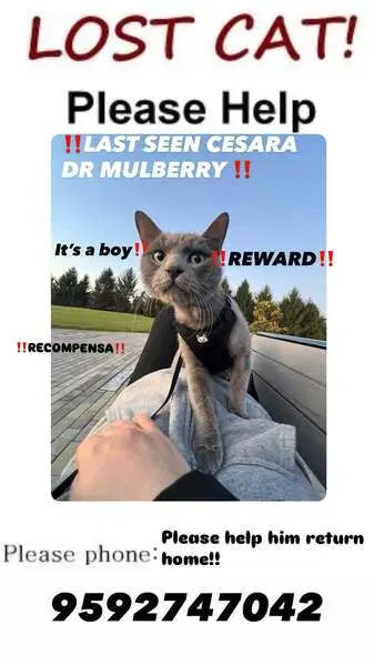 This little guy came to my backyard. He looks like a house cat super friendly gray with green eyes maybe 5/6 months old with a light gray or white belly