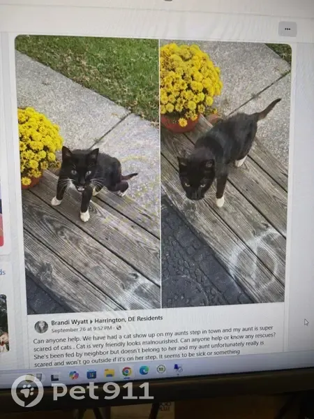 I have the same cat that was posted in Harrington DE Residence page about a cat at a girls Aunts residence last week. Guess, what? Miraculously, this same cat showed up at my place at least 10 miles away at my home! Obviously someone dropped it off at my house.