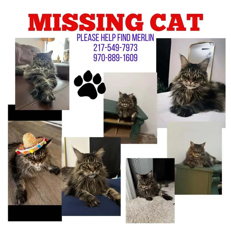 Found in a snow drift outside Otter Lake Dog Park on Christmas Eve. Long haired gray cat, green / hazel eyes, female, has both sets of claws. Enjoys pets, does not like to be picked up. Friendly and sweet.