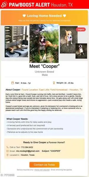 We found this dog running around. He’s very clean. I know he’s an inside dog cause he wants to come inside my house. I cannot keep him. I just have him in my little yard until somebody finds him if nobody finds him. I’m gonna have to take him to the pound if anybody wants him let me know. He is very friendly very kind and very lovable. He’s kind to my children he doesn’t bark. He doesn’t even jump. He just needs a very great home.
