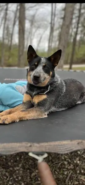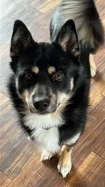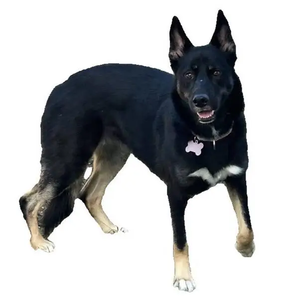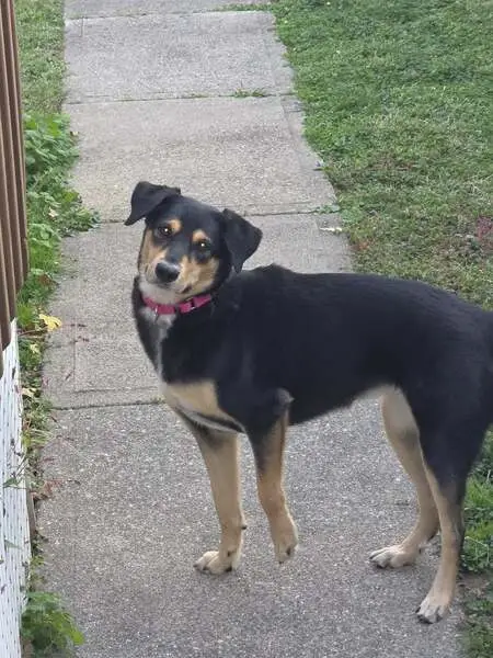 Small shepherd mix, female, approximately 8 to 10 months old. Not chipped. Very sweet. She was so scared and hungry and I was able to get her in my car and took her to my vet where she got some minor medical treatment. She is with a foster family right now, but scheduled to go to the Humane Society next Friday.