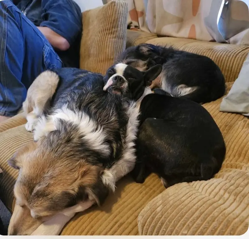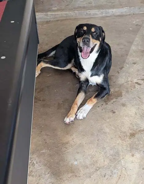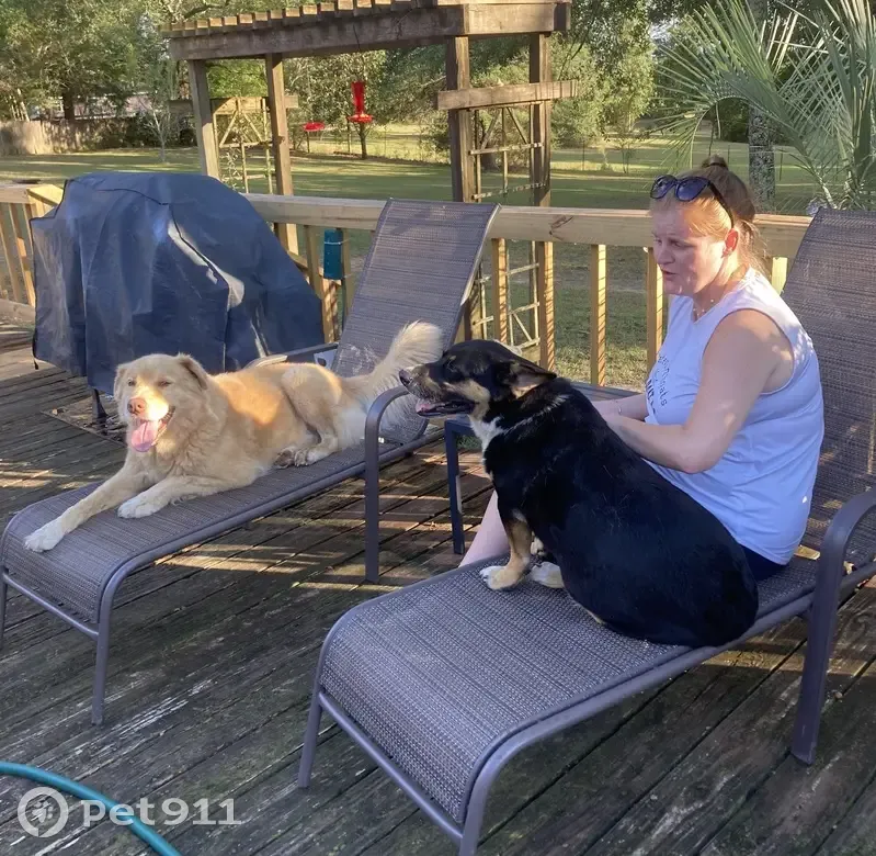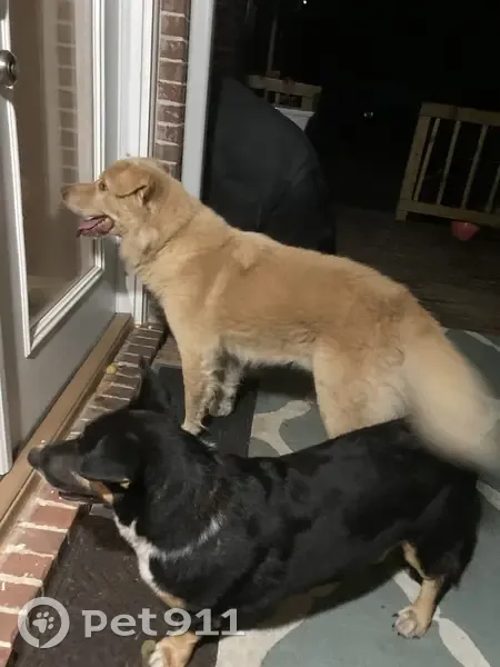 2 Dogs, 1 golden retriever mix, male. His buddy is a corgi that is black and tan, also a male. They found us hungry and thirsty on Tuesday October 7. Well behaved and full grown.