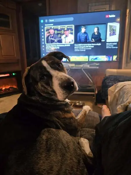 Terrified at first. Appears malnourished. Win her over after two hours with coaxing and food. About 1yr old. A real sweetie/snuggle bug. Has collar but no tag/chip.