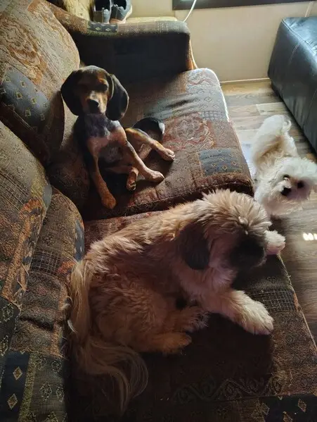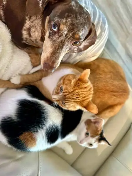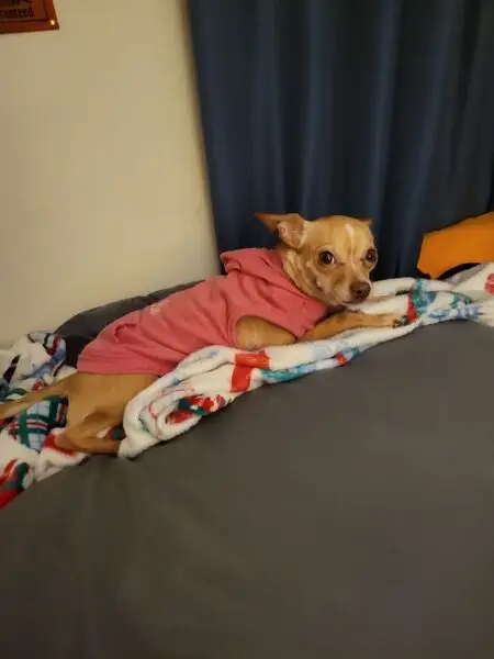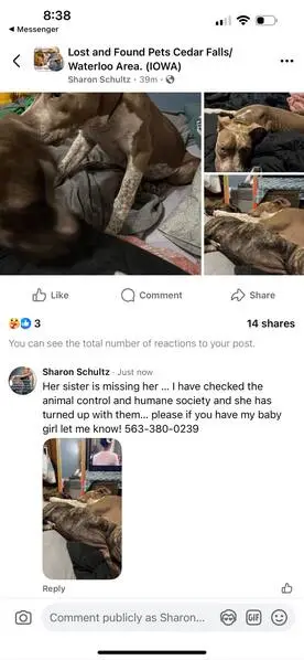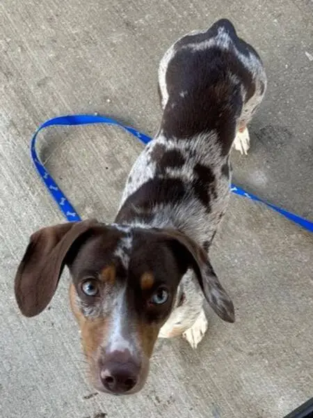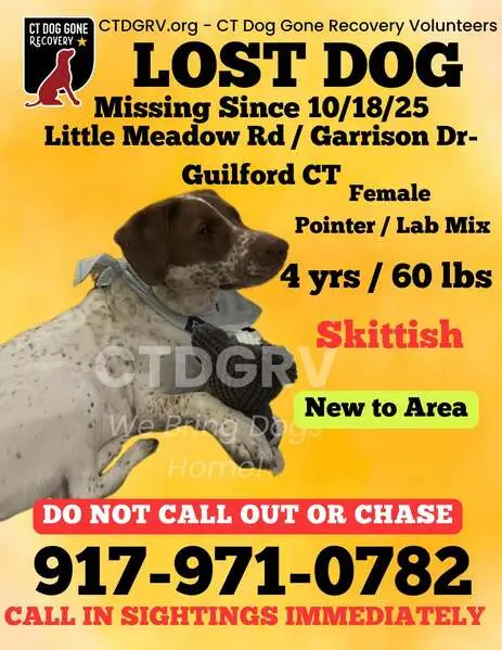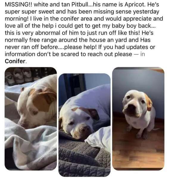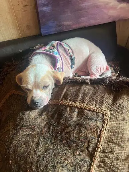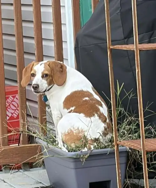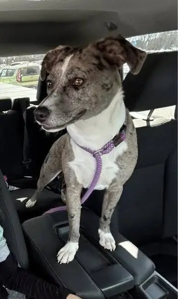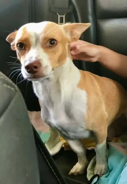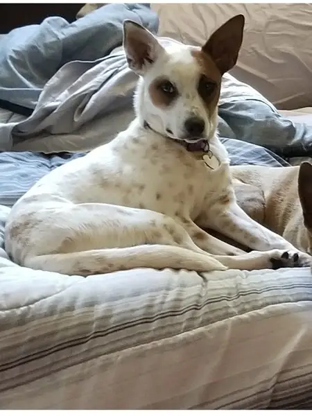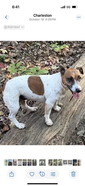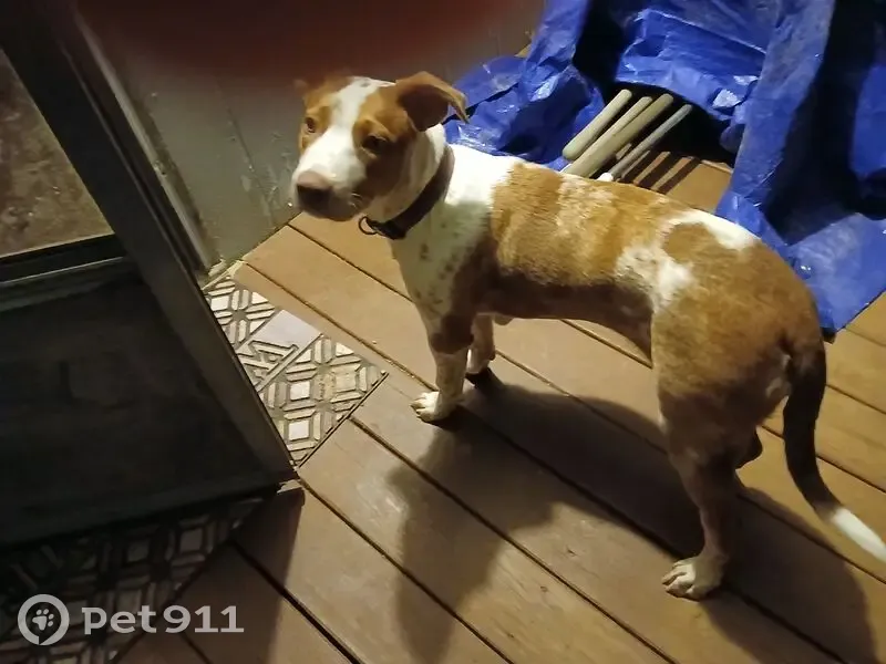 She was pawing at my door begging to come in. I thought she belonged to my friend and would soon leave. None of that worked out. She's a White & Tan small/med 30lbs?) dog with tan ear and eye patches. She has other large patches and tan freckles all over. He belly is mostly white, very clean, no signs of flea dirt, fleas, tics, other. She's a sweet baby and does well with other dogs and people. She has to be a house dog. She could have ran away from a holiday party around here and got lost. It was getting colder and rain forcasted. She was shivering, just cold, and scared. She rested up now. Please come get her. Thank you.