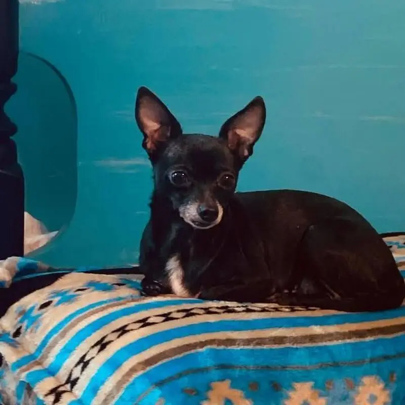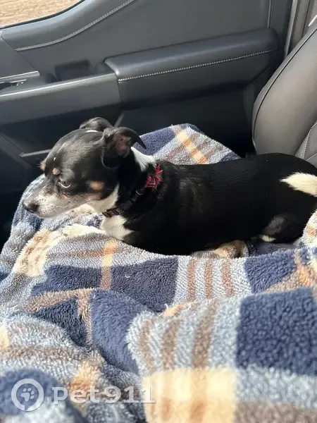 Looks like she might be a chihuahua mix. Mostly black with some white and tan. She was in the middle of the 412 bypass in Paragould near the intersection of Highway 69.