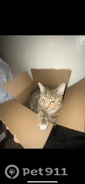 He has 2 paws in the back that are white looks like hes wearing white socks .. He has a white circle on his chest & the bottom of his 2 front paws are black! 559-392-1517
