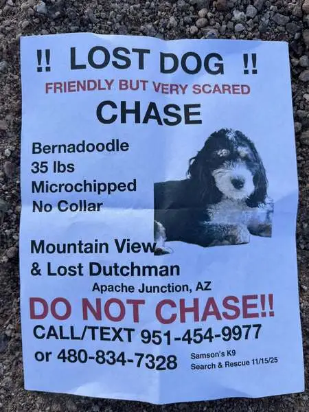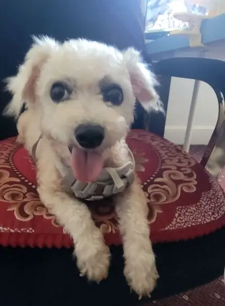 Penney weighs 17lbs, has long hair on ears, head and tail, short body hair. She ran when she got scared of the fireworks Sunday, June 30th. Pulled out of her harness so she does not have tags on