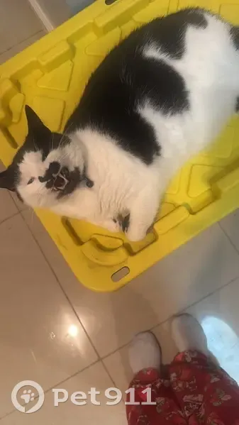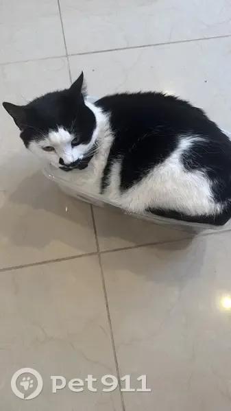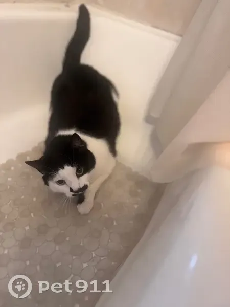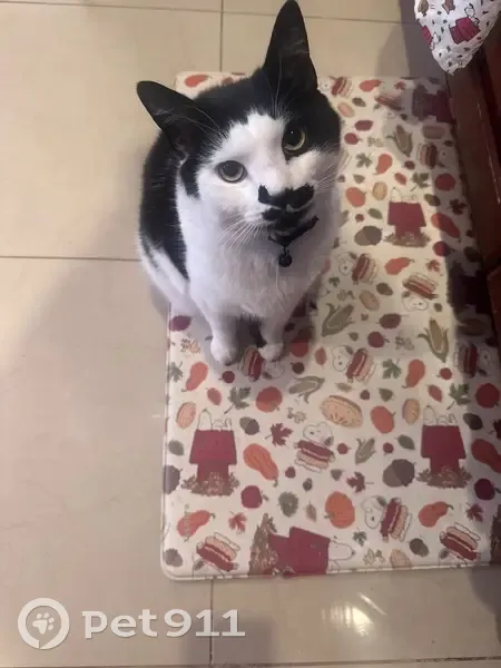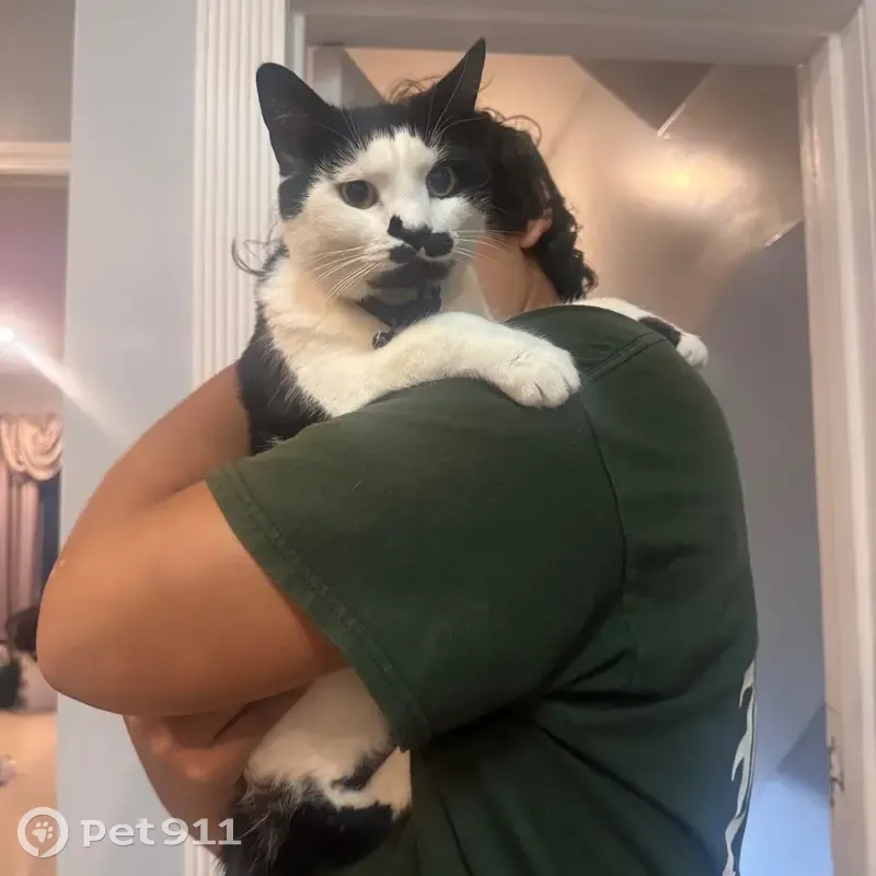 I believe he run away when my husband was taking the garbage outside last night and we didn’t notice him until today, he has a collar with a bell, he is a tuxedo cat and he is a really shy boy