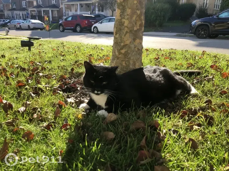14 yr old Tuxedo male cat. Black with White paws, bib and bow tie mustache. Approx 12 lbs. Very friendly. Did not return after being outside in nice weather. Last seen 3 pm on 1/8/2026 on Oak road in glenside between Limekiln and Springhouse lane. Indoor outdoor cat, but has never been away from home from more than six hours.