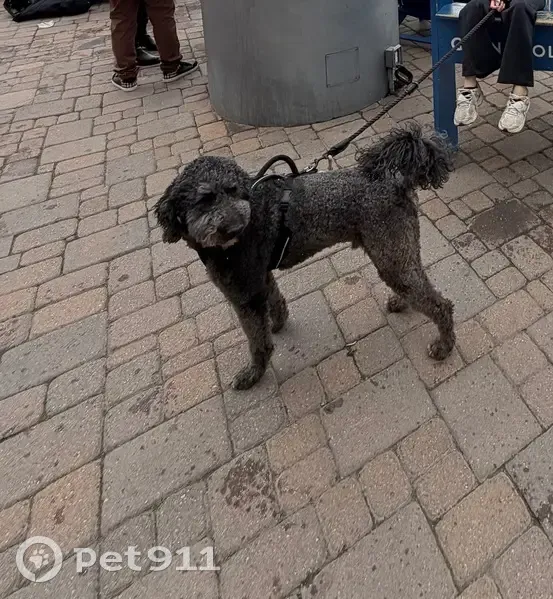 Black with some light gray fur. Has harness o...