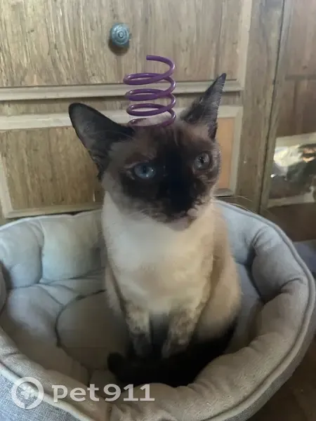Siamese, super shy, goes by b like (bee) or Beatrice Dark head bout the lightest dark blue eyes with her left so when you’re looking at her her right eye to you should have scaring over pupil vocal as heck at least was when she ran away from us