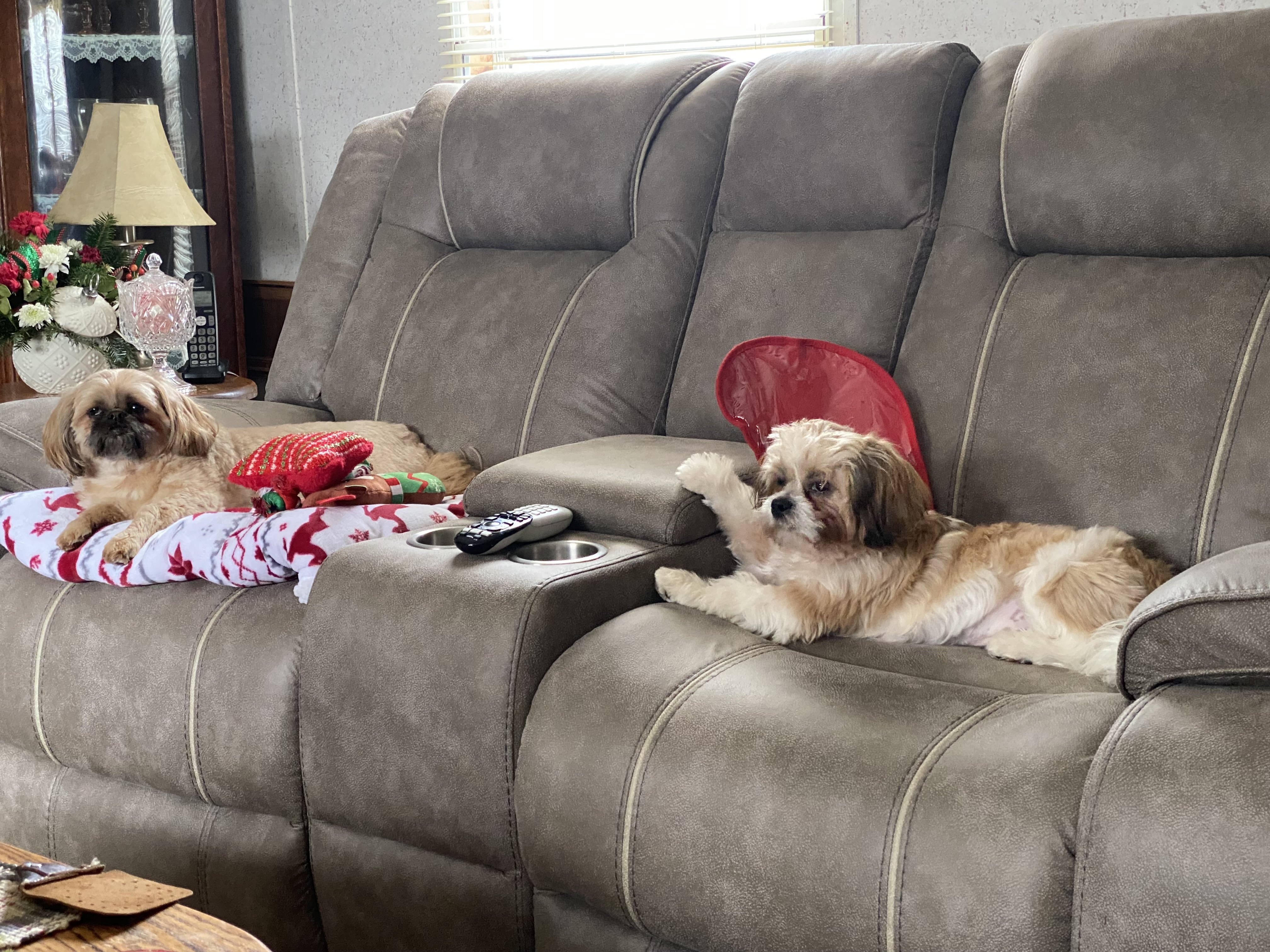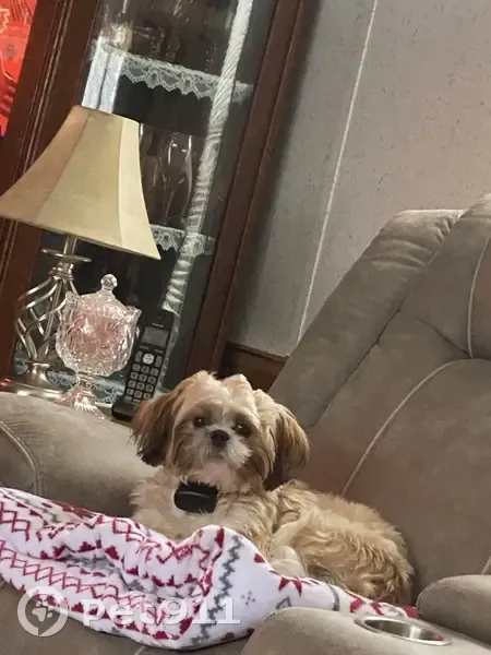 Jasper is a Shih Tzu he’s white with honey brown spots weighs about 15 pounds recently groomed with short hair.He may be scared of stranger's. He got scared when the tractor was plowing snow and ran.