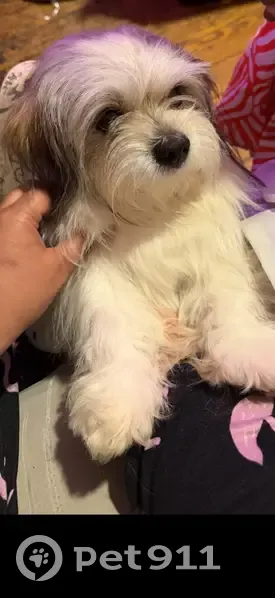 White with some brown and black areas. He is a support animal for my 5yr old daughter who is medically disabled. He likes to visit the neighbors on Hancock that have pets, the neighborhood knows him well. 4757319229