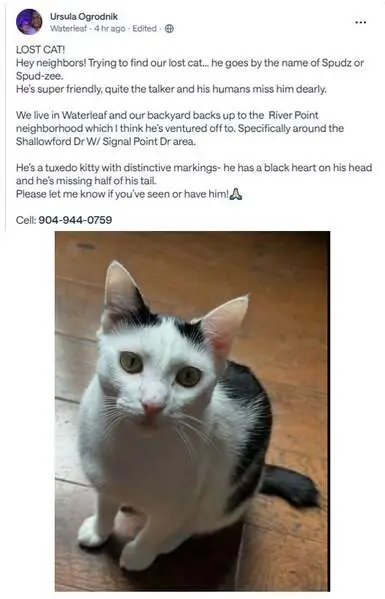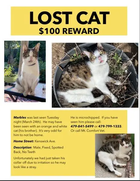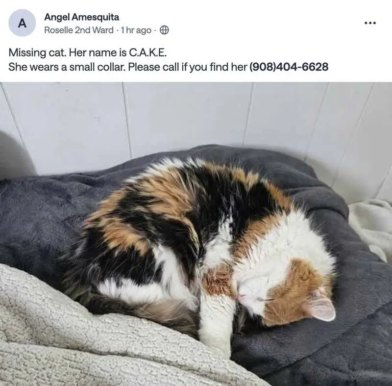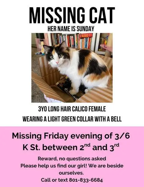 She is a tri color, black tan and white calico, skinny and young. I found this cat outside in my front yard around 6am. She would not leave and was meowing like she was hungry. She is taken care of, very sweet. Thought maybe she could go back to owner if seen on this page.