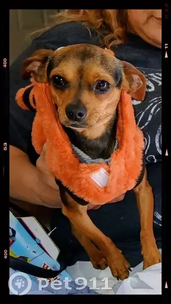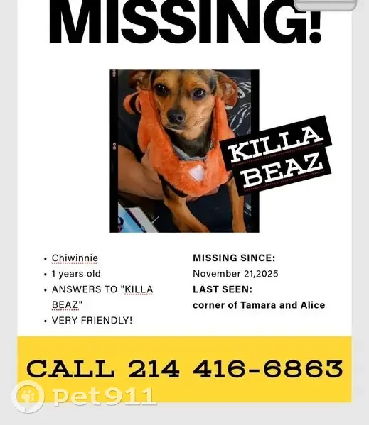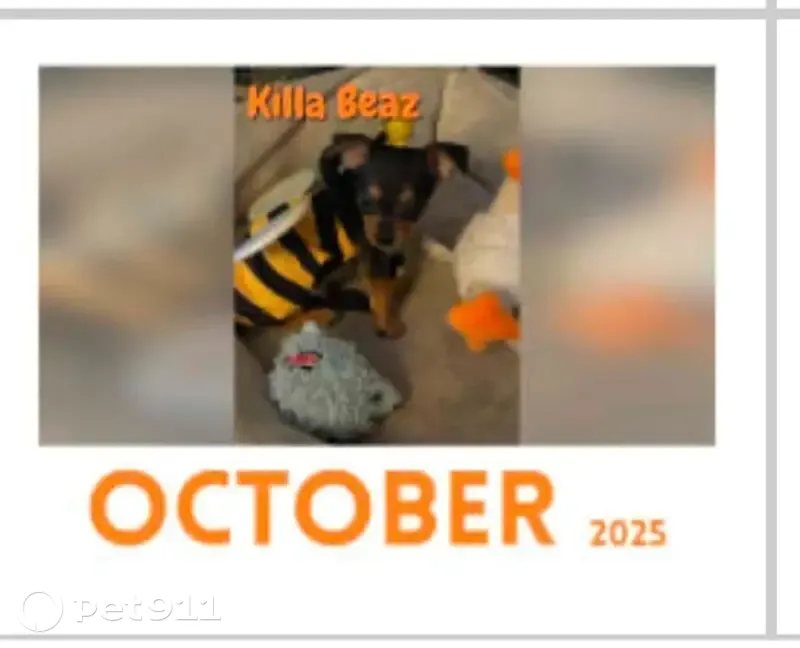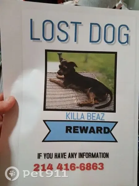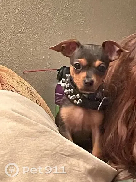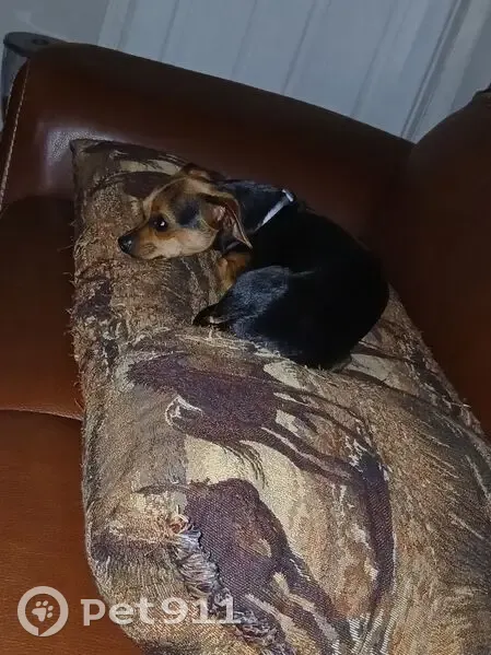 Short hair Chiweenie 1yr old very happy and friendly he has a cat collar on because he is so small and dark i,can't see him but I can hear him coming. So early Friday morning around 1AM I let Killa Beaz & Popcorn out my front door because I see them im right there they never take long bathroom breaks Popcorn showed up but Killa Beaz disappeared