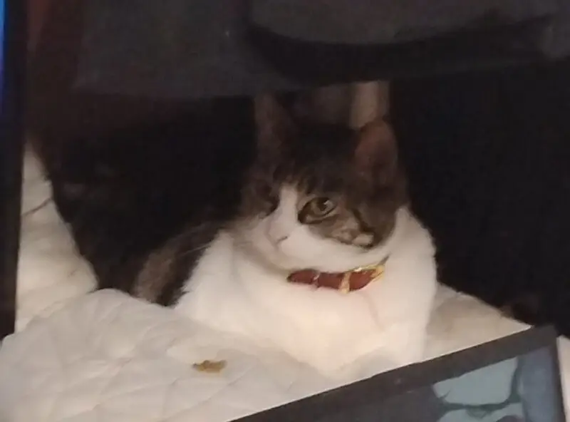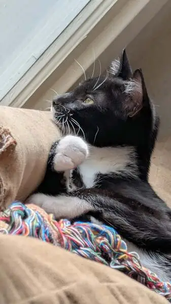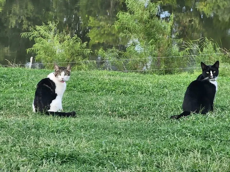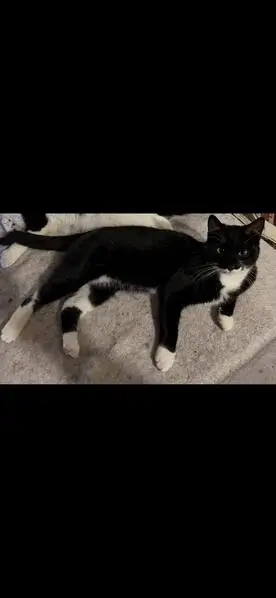 Tuxedo, seemed young, maybe a year or two old, small cat with white/tabby kitten. I'm guessing it's the mother of a kitten
