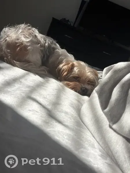 Ivy has white, black/greyish, and tan fur color with spots on her stomach. She is very sensitive and tiny. Ivy is my service dog and i am losing my mind without her