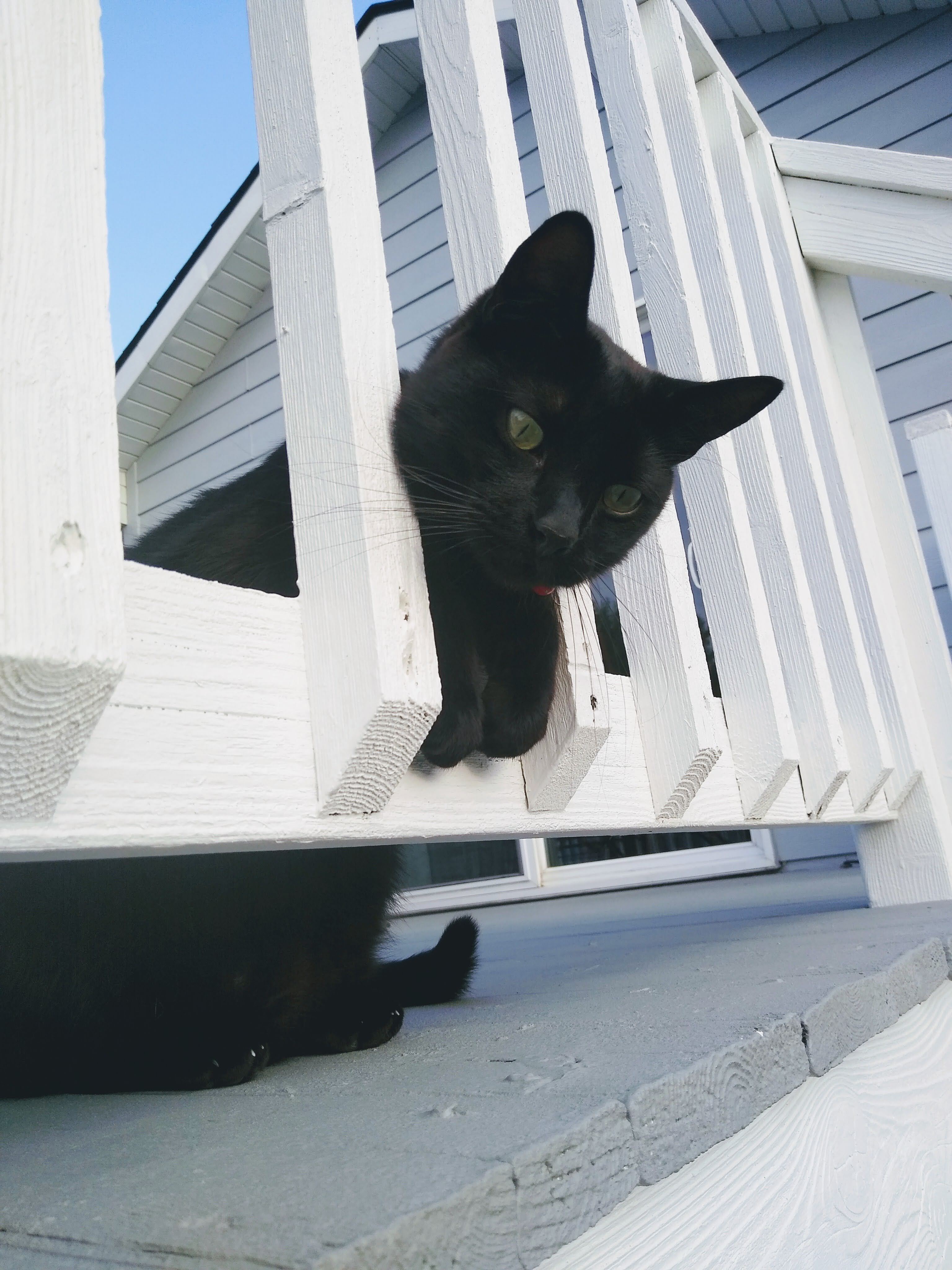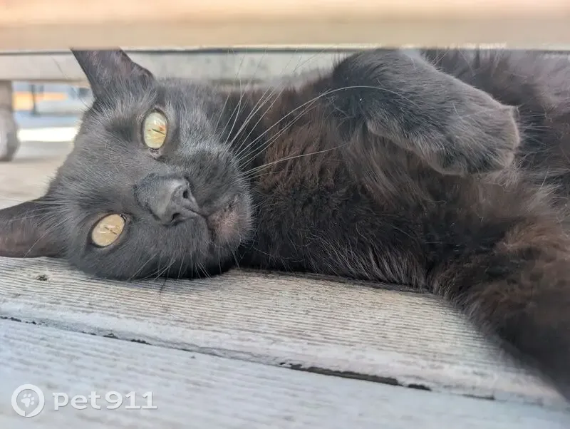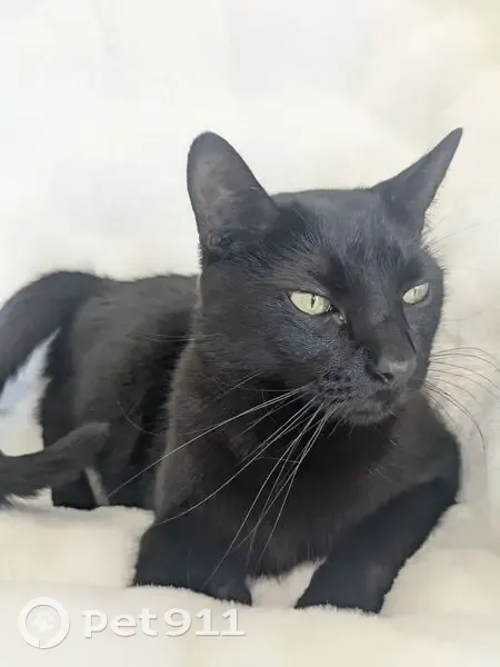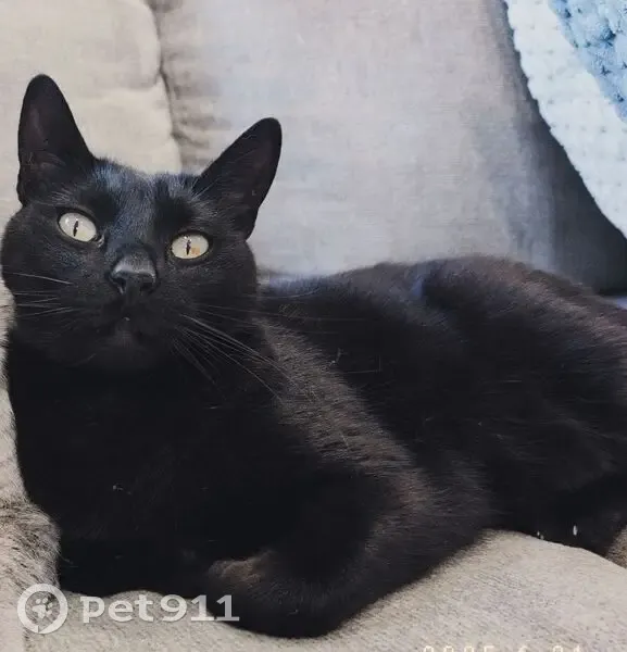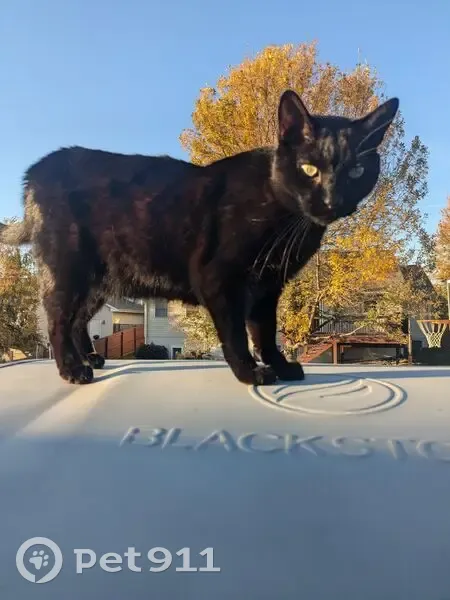 Ollie is a small, 7 yr old black cat, weighing about 11 pounds. He has yellow eyes with distinct orange spots in them, with a larger heart shaped spot in his left eye. He doesn't really like other people and gets scared very easily. Ollie only has 6 teeth on the top due to an infection. Microchip may still have his name as 'Larry'.