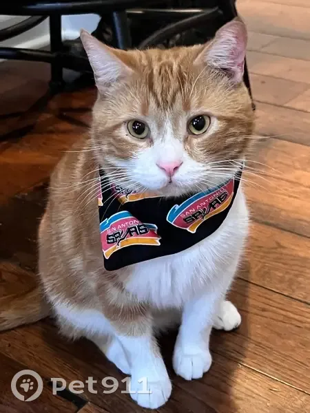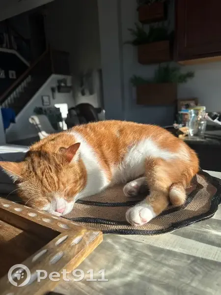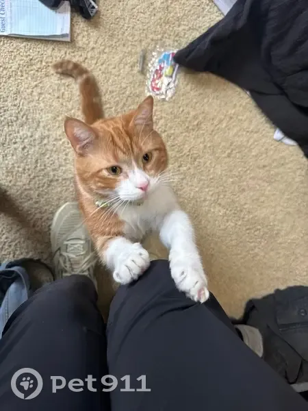Orange and white coat, very friendly and active. He was wearing a red collar when he disappeared.