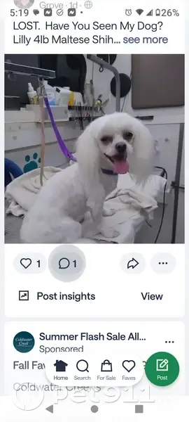 Lilly is a my-she. A cross between Maltese & shih Tzu. She weighs approximately 4 lb and is pure white. Lilly is 4 years old. Lilly and her mama and half sister took a walk and then mama and the half sister came home and Lily did not. Lily was not wearing a collar and she is not chipped.