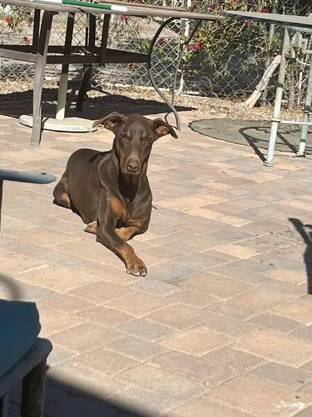 A boy and a female: Base color is black and brown on legs and face on both dogs. Seem friendly. They were wandering the street on Alne Drive in Hemet. They just came into our front yard while we were doing yard work. We did contact Humane Society in San Jacinto to come and pick them up. They do not have collars on with tags so we were hoping they are microchipped. They wandered into our yard on 7/8/2025 at around 12:30 pm. Happy News! 7/9/2025 Riverside County Animal Control in San Jacinto CA Website is showing that these two babies have been reunited with their family.