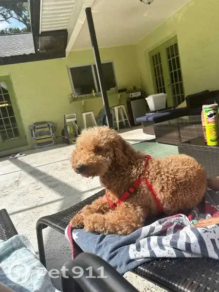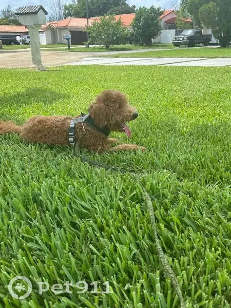 Bailey is a mini golden doodle, he was was recently shaved so he doesn’t have much hair. He looks more like a big chihuahua. Doesnt have a collar as he ran out of the house.