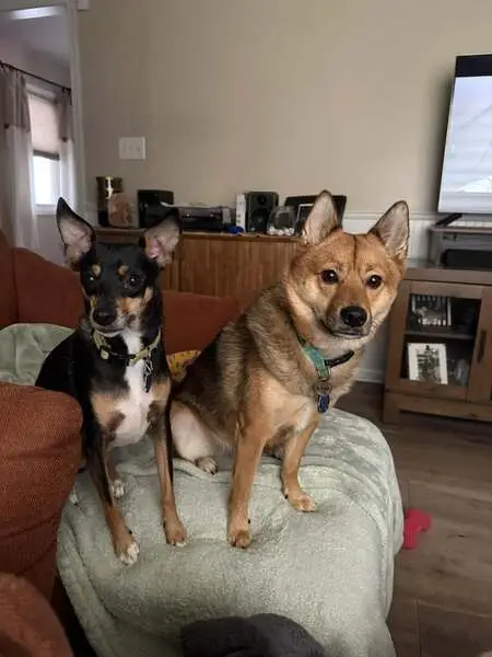 Two tan and black chihuahuas male and female. Very friendly and seems to be seniors. They were running down my street last week.