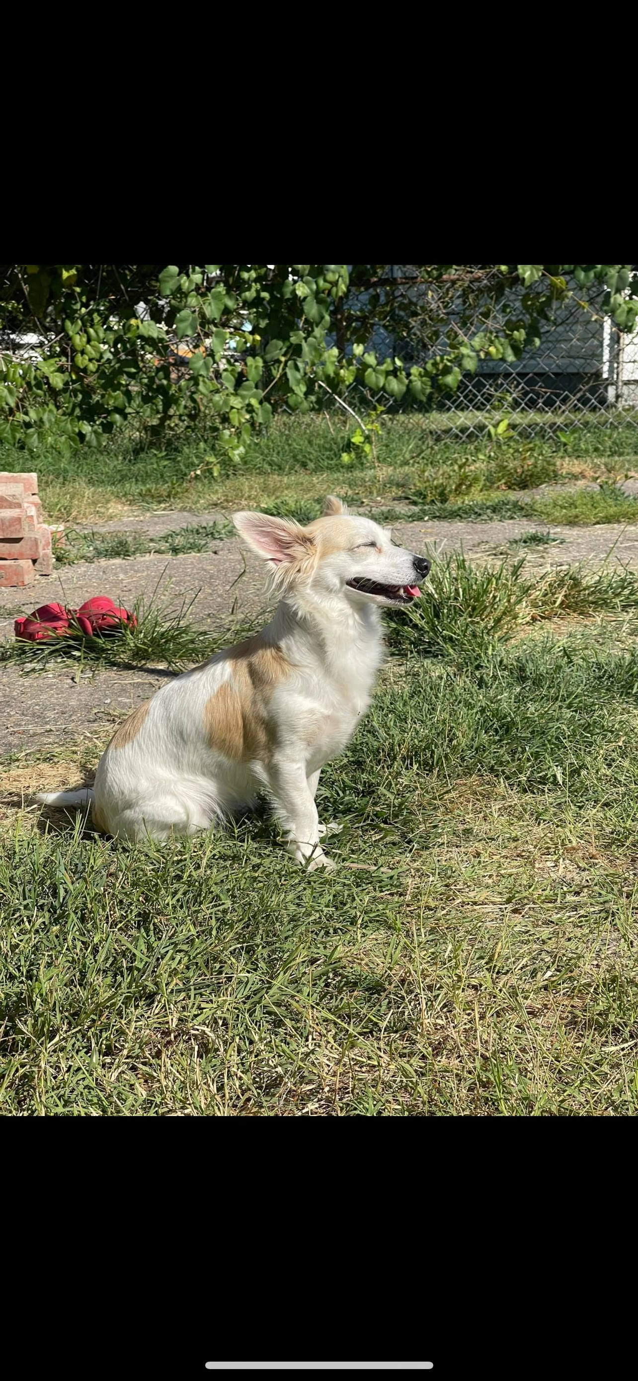 Zoe is a chihuahua/jack russel mix. She is all white with tan patches. She’s only 12lbs with big pointy ears and a long fluffy tail. She managed to escape from our fenced in yard and may have gotten herself lost. She is very skittish and only trusts her specific humans. She has a tendency to bolt.