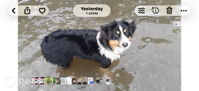 Black lab. Friendly. Has a grayish snout. Sma...