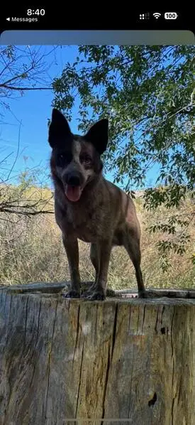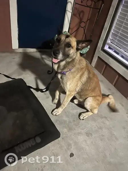 Brown coat with black ears, super sweet and loving. Doesn’t bark at anything. He’s currently playing with my dogs. I got a call from work since they know I love animals and they said this dog kept walking into the lobby even when they kicked him out. I told them to hold it until I got there.