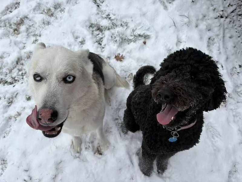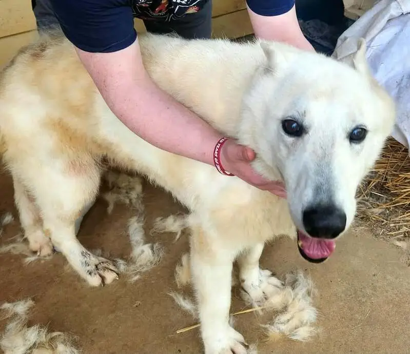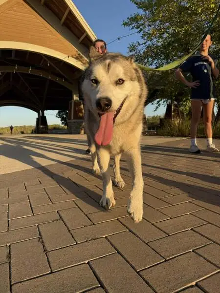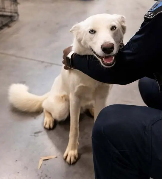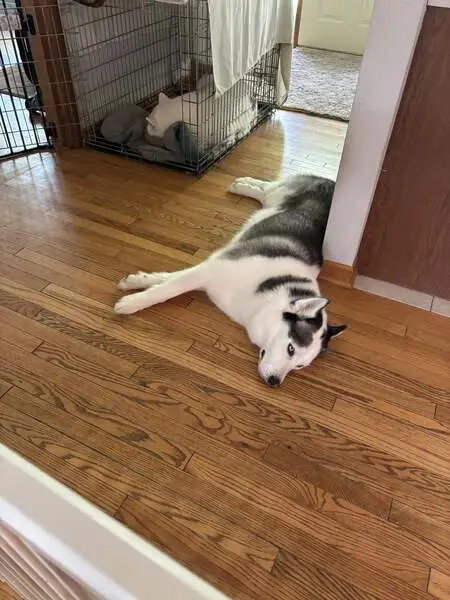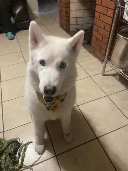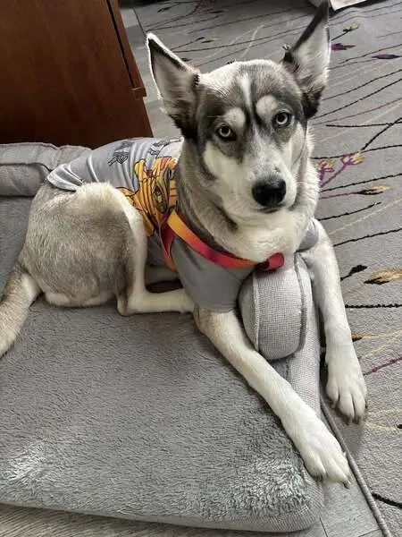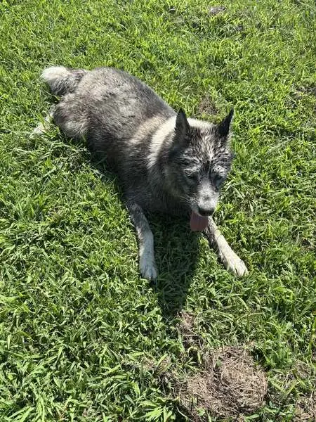 Found beautiful Husky early this morning 2/25/26 on my porch at 630am. He just was just laying on my porch. Zipcode 77064 Jersey Village area. Very sweet. Took him to the vet. Not microchipped. Not neutered. Heartworm negative. Blind. Only 37 lbs very bony. Got his bloodwork and bloodwork was amazing. Vet said his bloodwork was like a young dog. So that's good news. Vet thinks he is 7yrs old. But thinks he may be younger due to his condition. He was dehydrated. Got him iv fluids. He is very sweet. Loves the back of his ears being scratched. He just wants love.