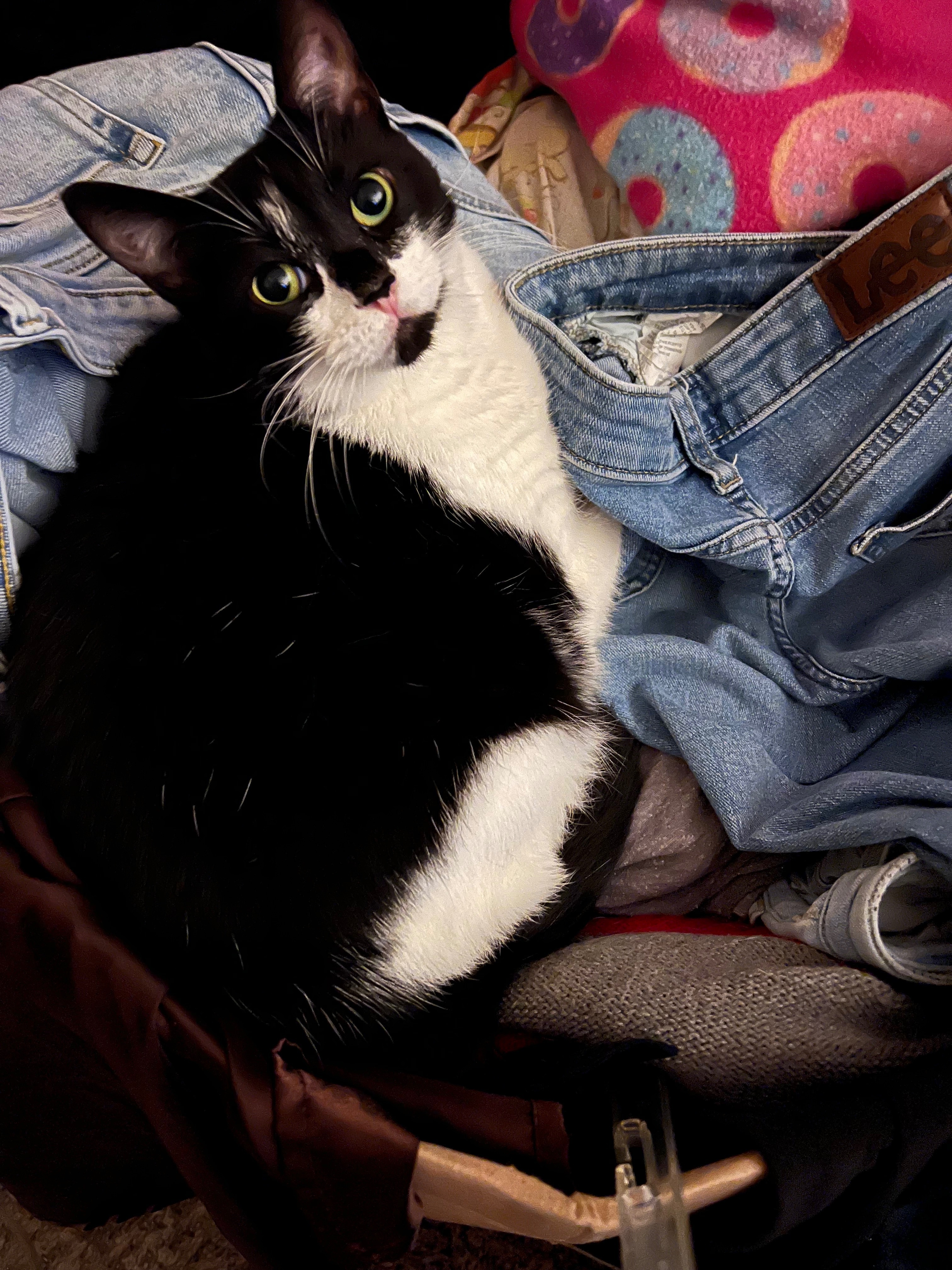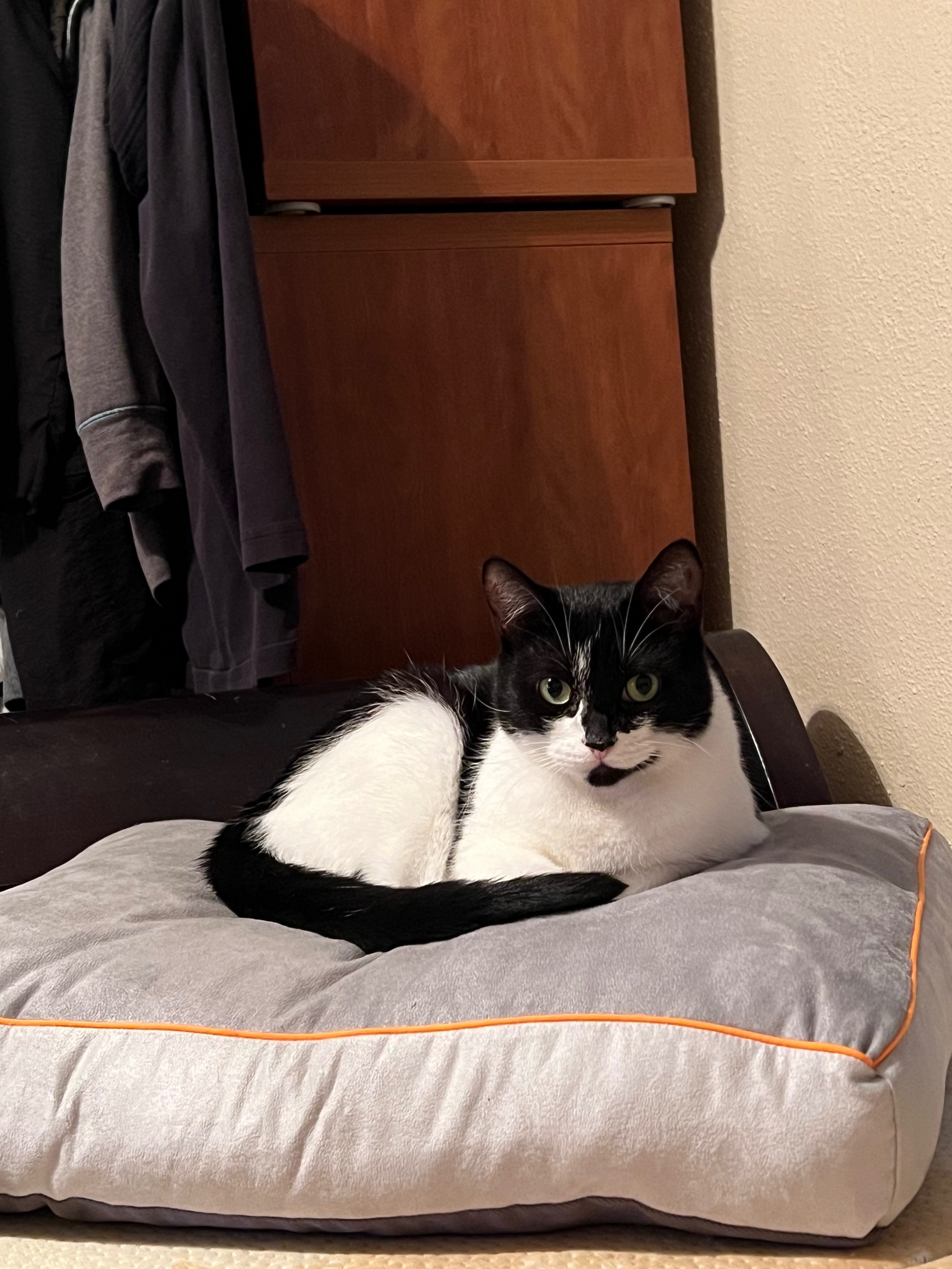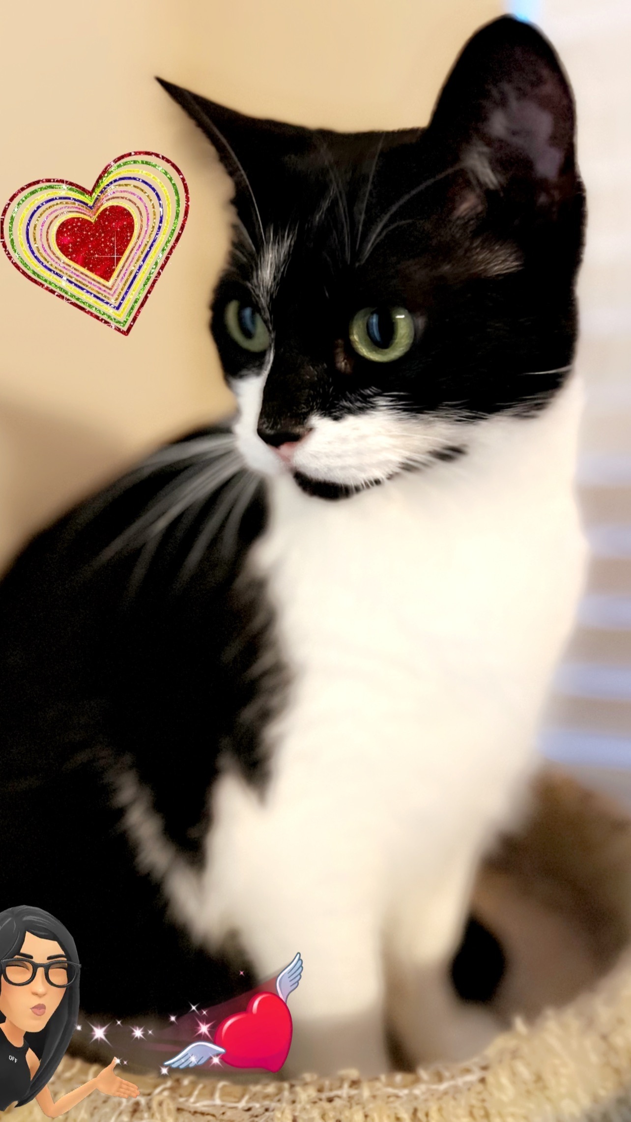 Black and white tabby. Has a black-and-white face. She is a house cat and has never stayed outside. If you find her, please contact me at 281-740-0328. If you live in Sharpstown Apartments on the golf course, please be on the lookout. Thank you. !