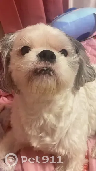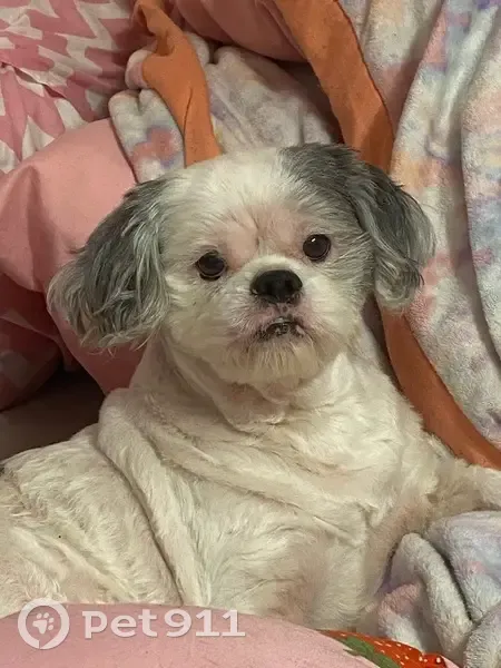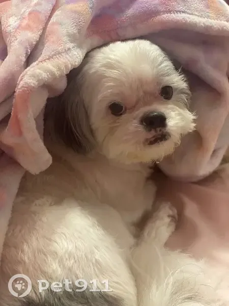 He has a black spot on his lower back (It’s a tiny spot). His nose is black and his lips are spotted black/pink. He’s got a fluffy black/white tail. He is very friendly and responds to Charlie. He has a persistent yeast infection that he had been receiving treatment for. So he has that yeasty smell. His hair was a little longer when he went missing. He is a shih tzu mix.