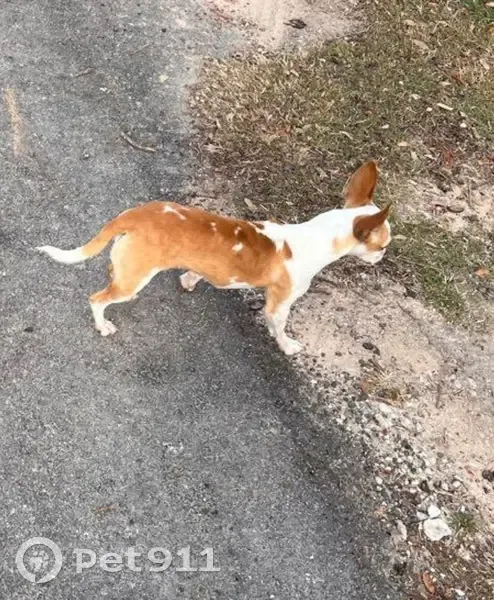 She’s a female chihuahua white with brown orange spots as the pictures shown. She’s friendly will go up to you but will run away if u try to grab her. She was outside my mom at 9:40 was the last time I saw her on 02/11 and then on 02/12 at 8:30 am some lady say her..