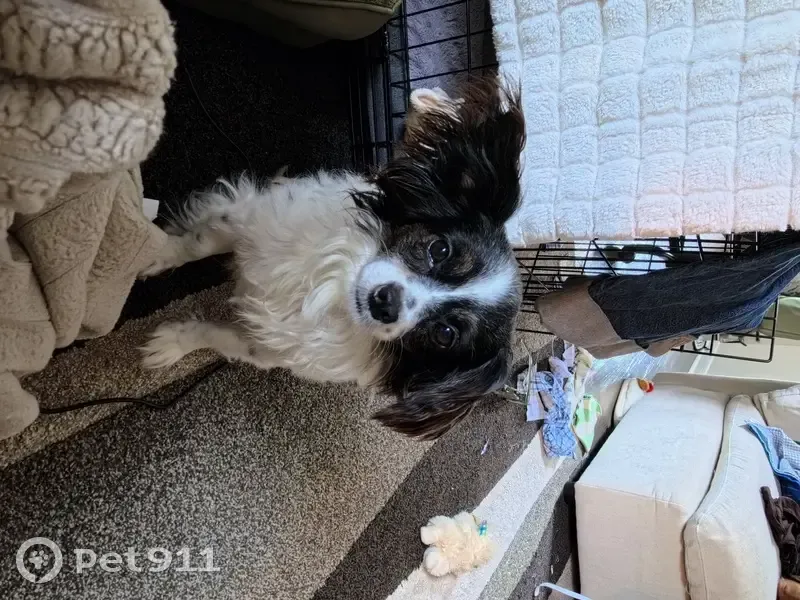 Lola is about 12-15 lbs with blue collar. Her fur is white and black. She is a mixed pekingese and chihuahua. Please give me a call at 8327733318 if found she is shy due to her past trauma with old family.