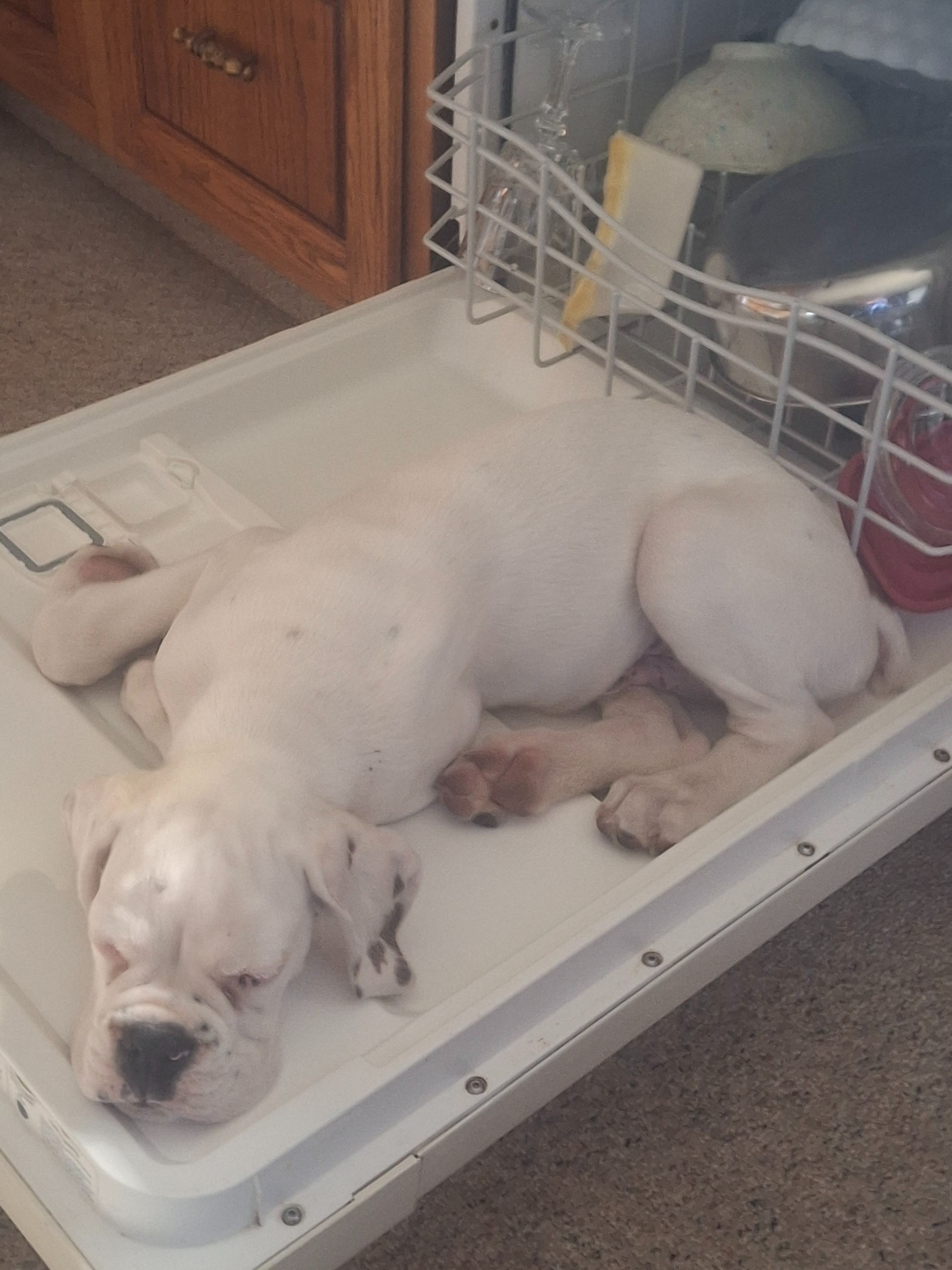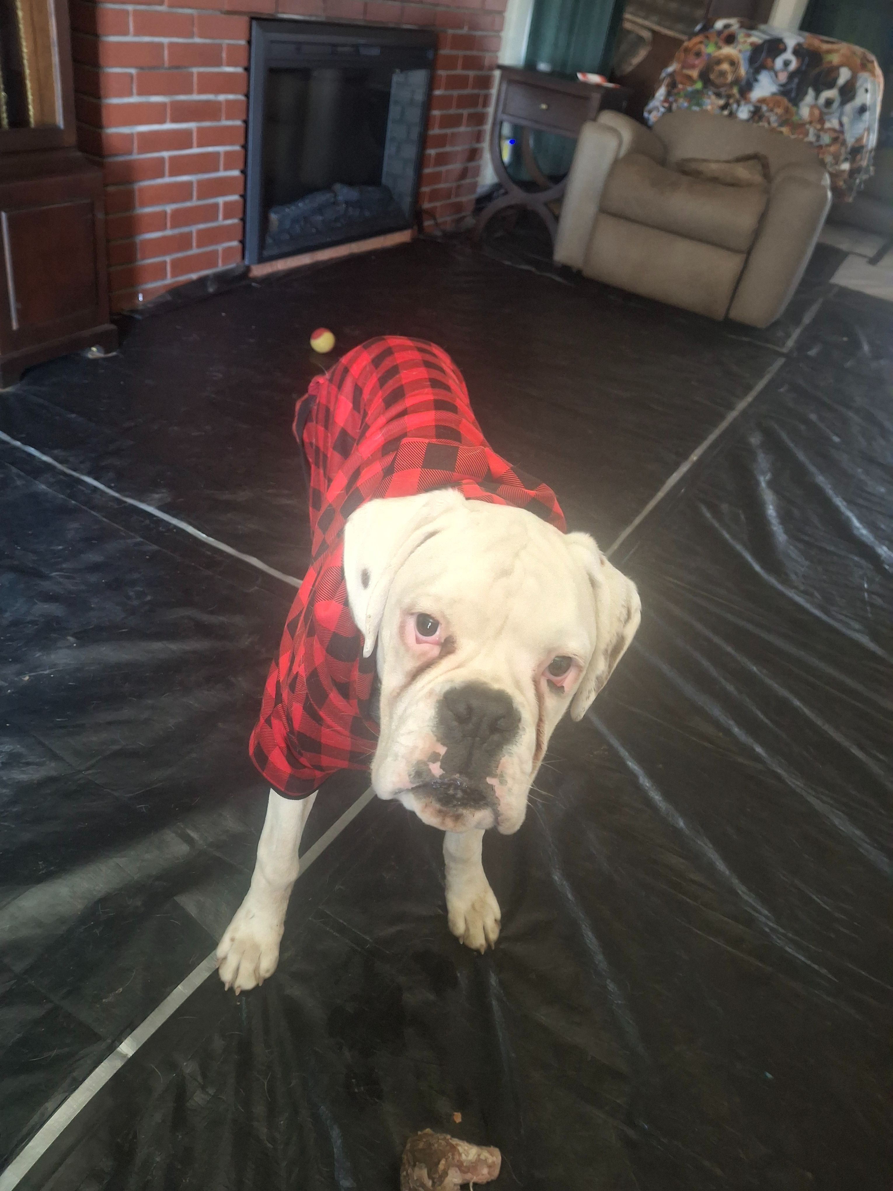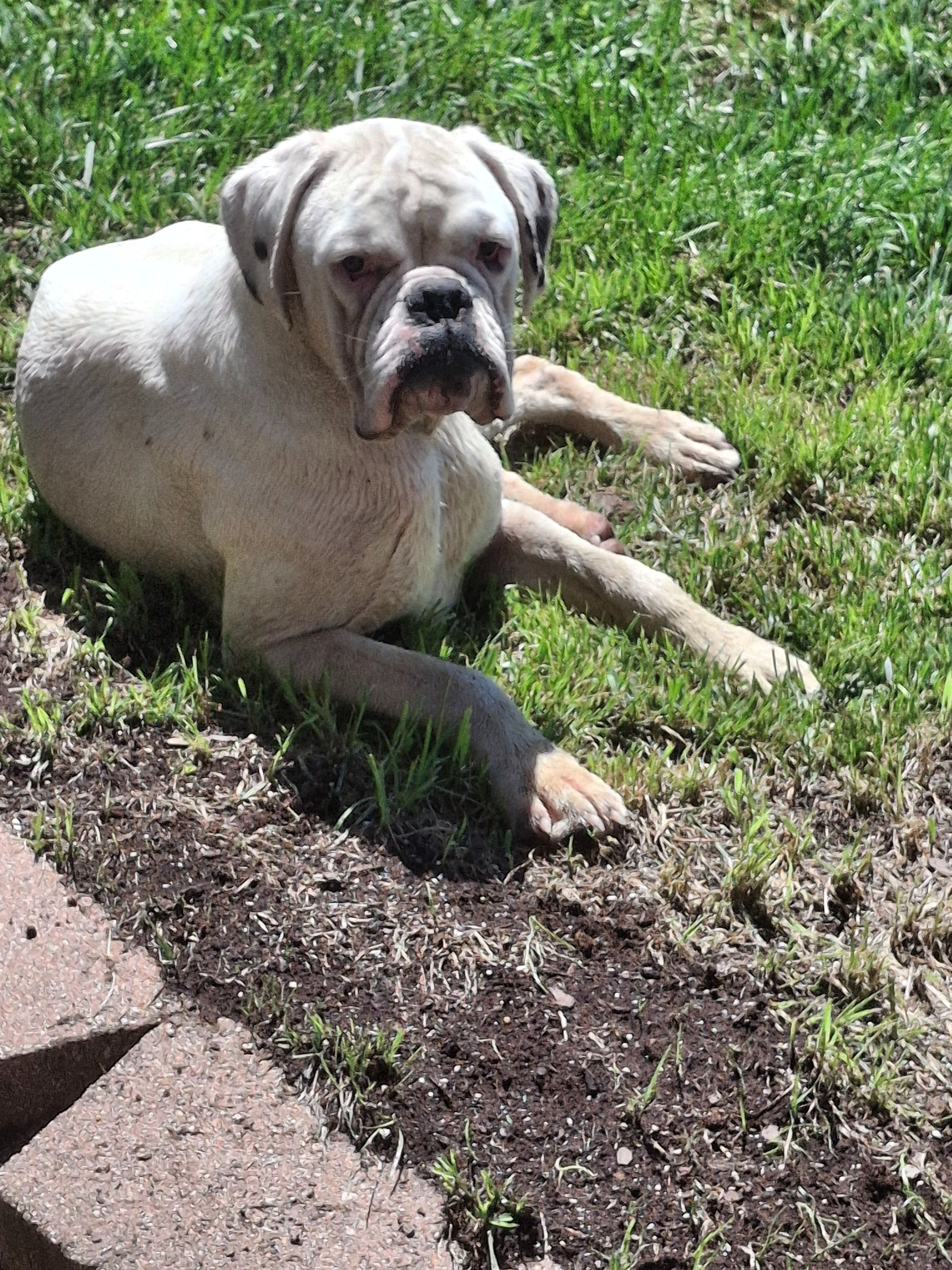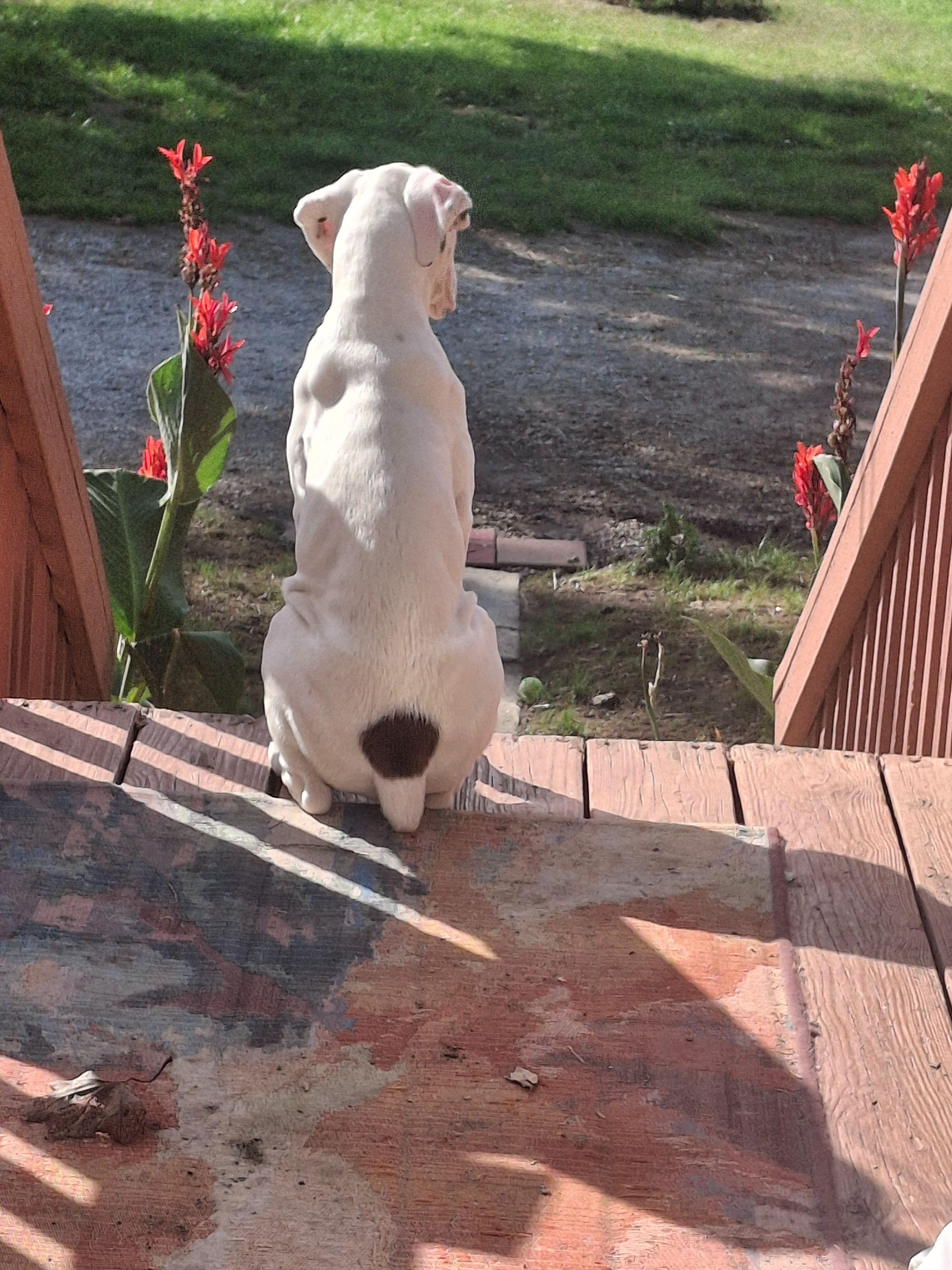 Taylor is white boxer white fee brown patches, big one above tail. Very tall and skinny at 17 months 65 lbs. Very wrinkled face with tear stains on face wrinkle. Wearing electronic collar, name tag and bell. Microchip. Has severe hip dysplasia and was on pain meds, bobbed tail, neutered. Him and his buddy Opie Dan were stolen same time from front yard. I am handicapped, in chair mostly and both hands limited use. They are my everything emotionally. Treated better than most children. Like to be together . I am unconsolable about this. I'm single live only with these babies. Please bring them home to me no questions asked. They are not in this area. No sighting ever. You see someone with new dogs please report to nearest law enforcement
