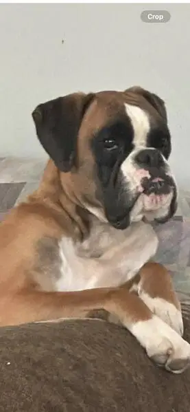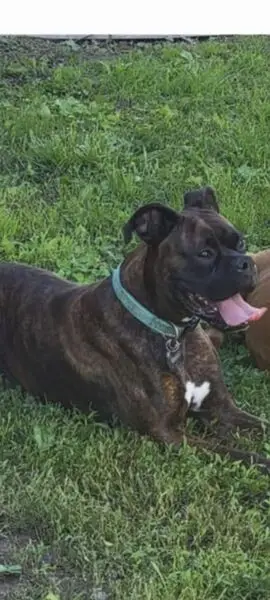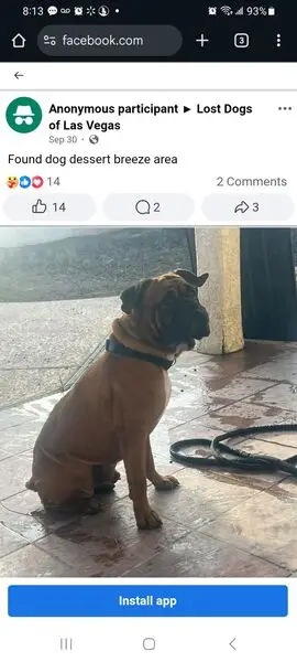 Calm brown female Pitbull with a Harry Potter collar. No name tag or microchipped. She has been wondering around the neighborhood and she was so thirsty and hungry.