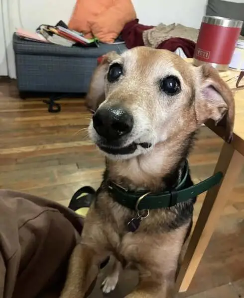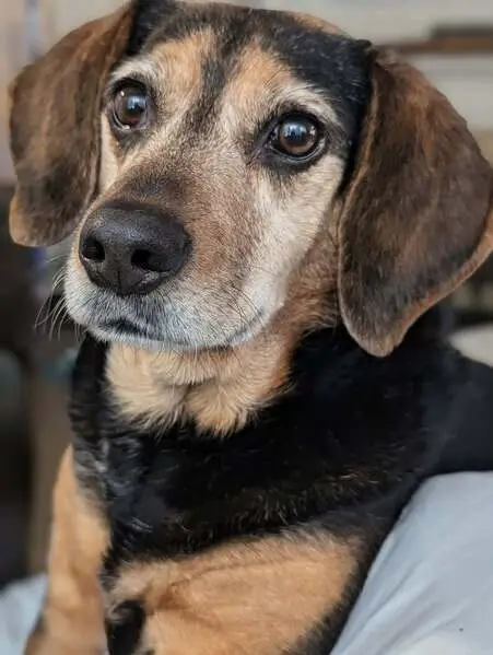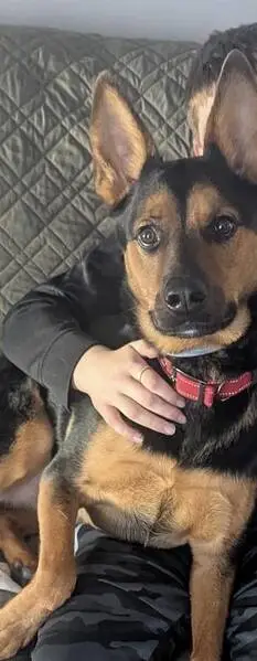 Male. Black, brown and some white. Small dog unsure of breed. Very well behaved. Has a rabies tag. Called phone number on tag but closed today.