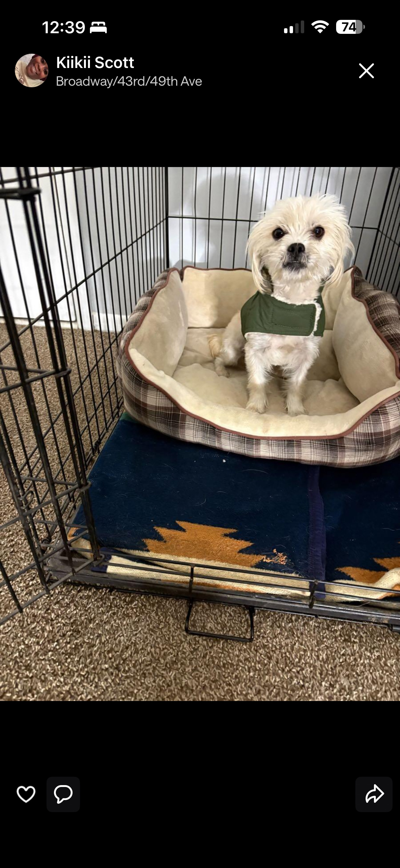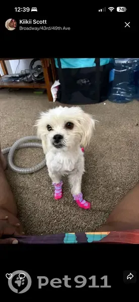 My Dog is Missing her Name is Snoh she's a Maltese Shih Tzu mix she's about 8-10lbs brown and white/ cream color she's good dog and never just goes out please if you see her reach out to me my number is (219). 806-0119