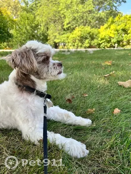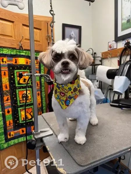 Axil is a white with brown spots shih Tzu. Black leather collar with tag that says his name owners number and mama’s boy. He ran off from his house near Kennedy Park in Fort Dodge, Iowa. Mohawk and goatee.Underbite with a missing tooth in the middle.