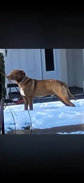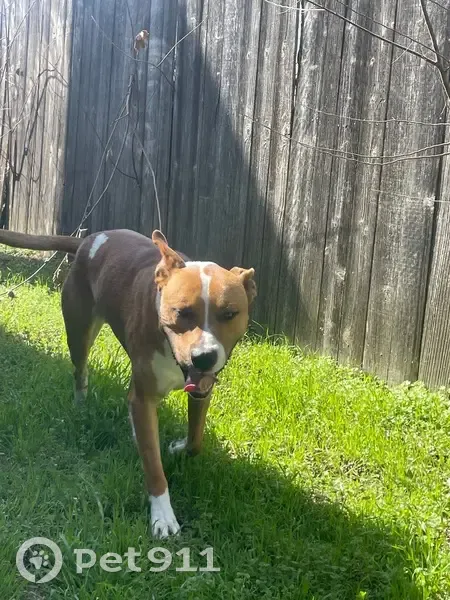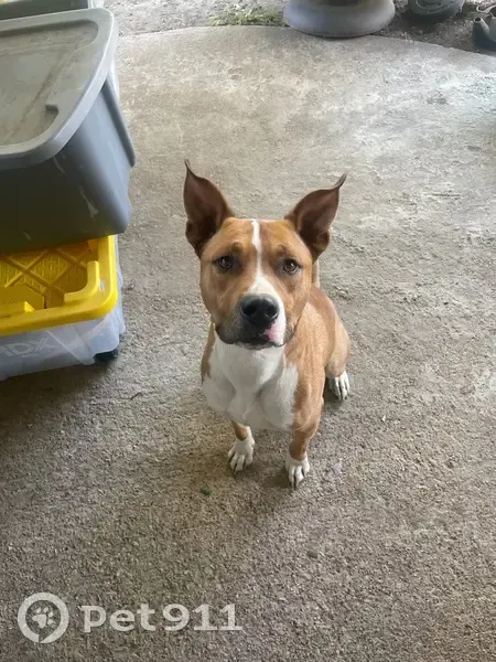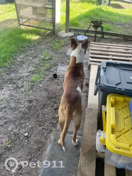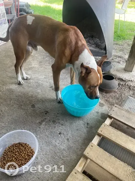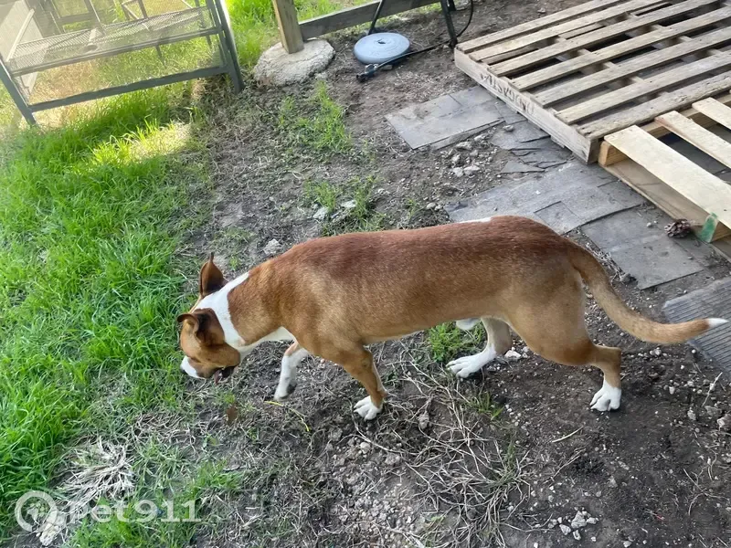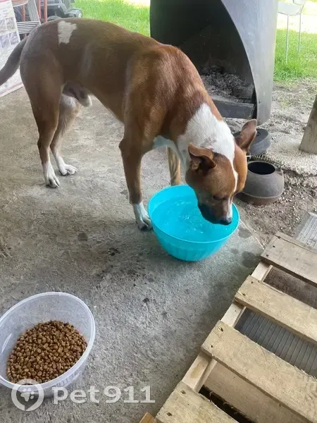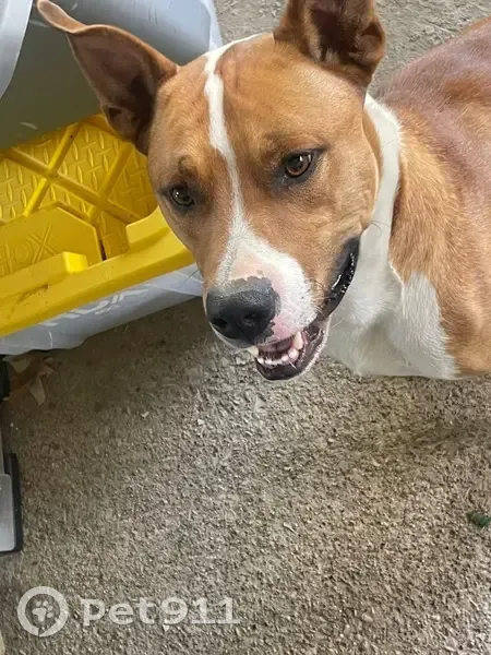 Light brown in color with lots of white around his entire body. Especially on the chest and feet. White blotches under his nose that have hints on red. Very gentle and calm around people, unsure of other pets.
