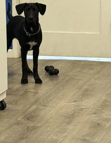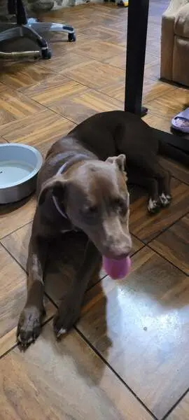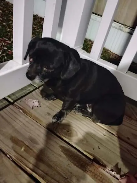Duke is a long black bodied dog with a white chest. He has a long torso and short legs. He has a purple collar on that was attached to a leash outside, the part that he was attached to is gone as well. He also had a bald spot on his shoulder from a scar he recently had. Please help me find him.